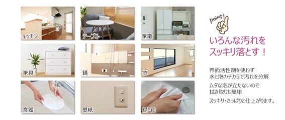 ・成分は「水」(クラスター水) 食器やキッチンまわり、お風呂場、トイレ、衣類のよごれにも、幅広く使える
