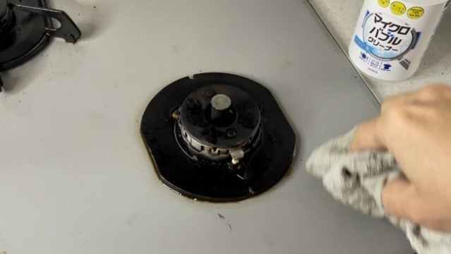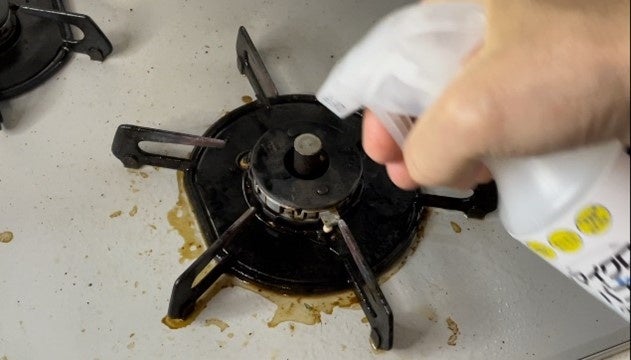 実際のお掃除写真(コンロ周りの油汚れ)