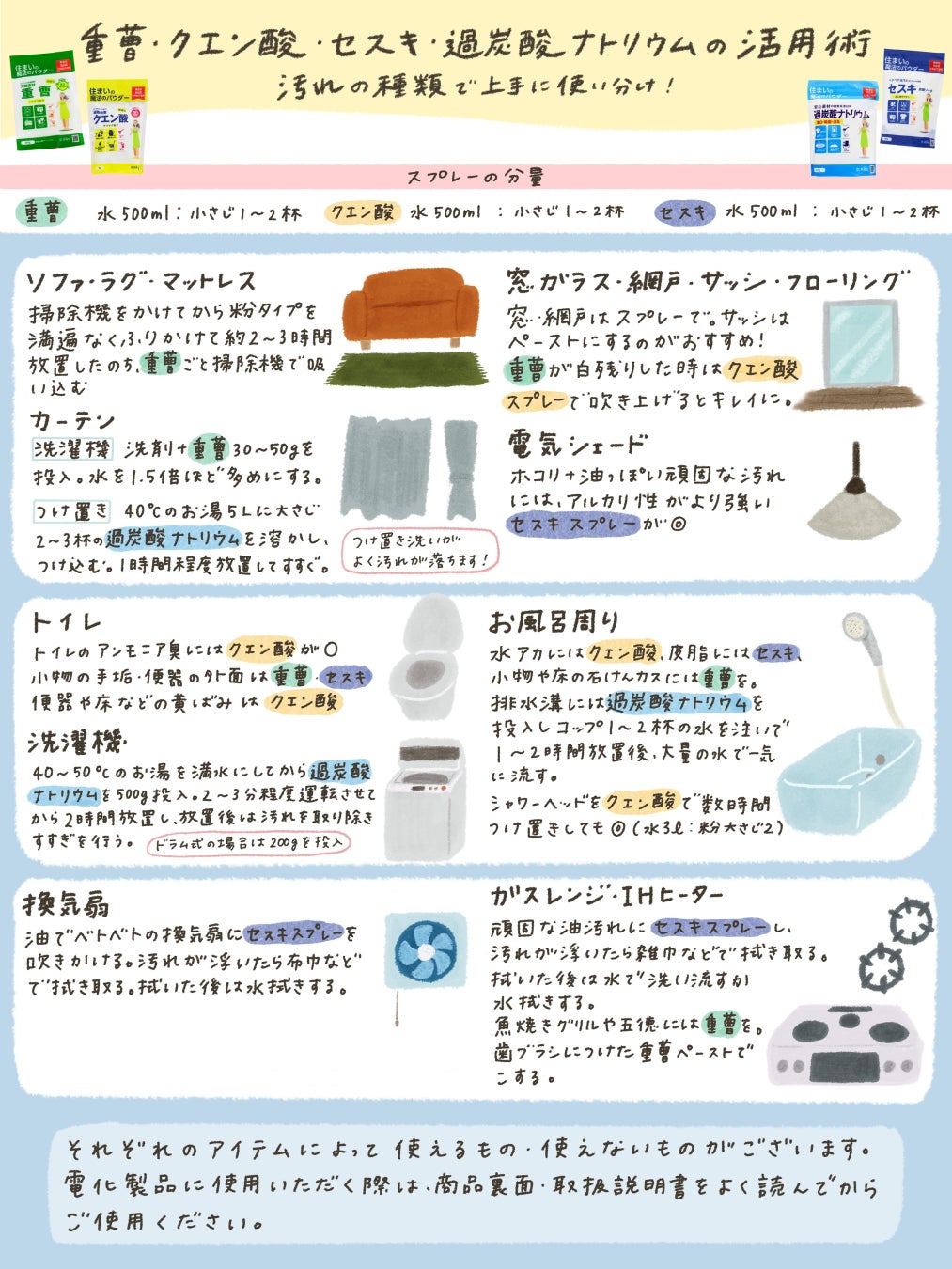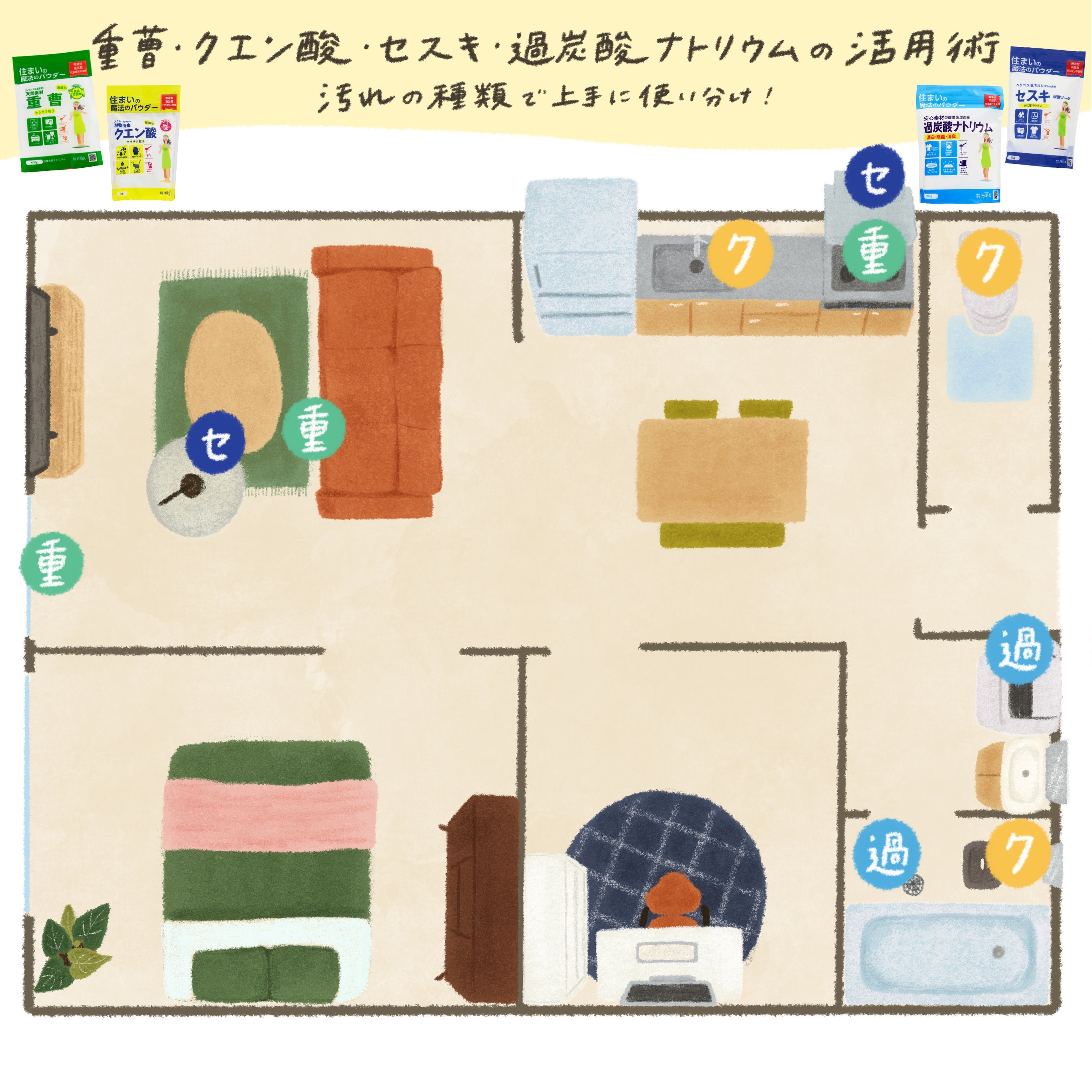 洗剤を使わない年末の大掃除!~“重曹・クエン酸・セスキ・過炭酸ナトリウムのお掃除マップ公開~