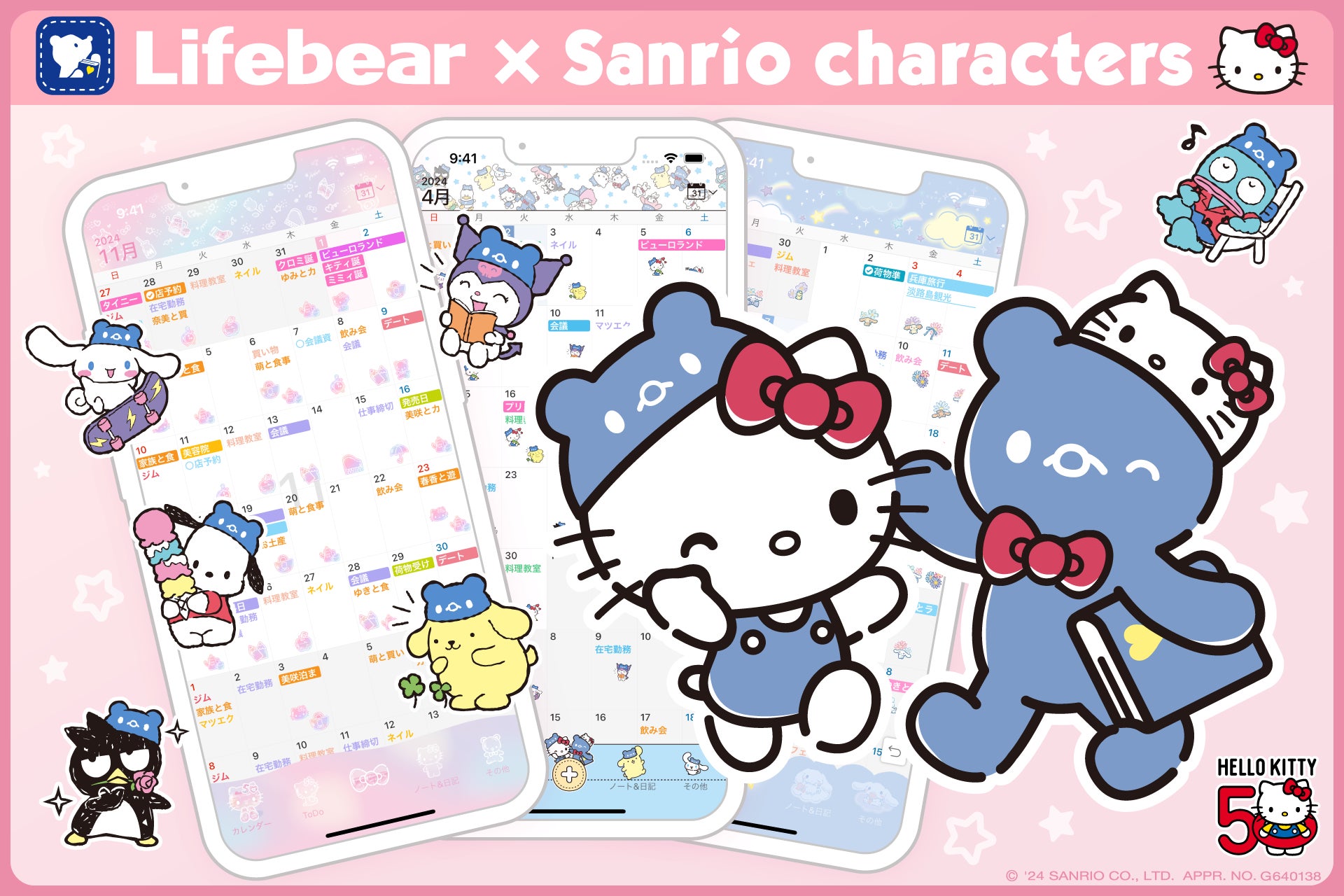 【手帳アプリLifebear】サンリオキャラクターズとのコラボ着せかえ、スタンプがリリース開始!