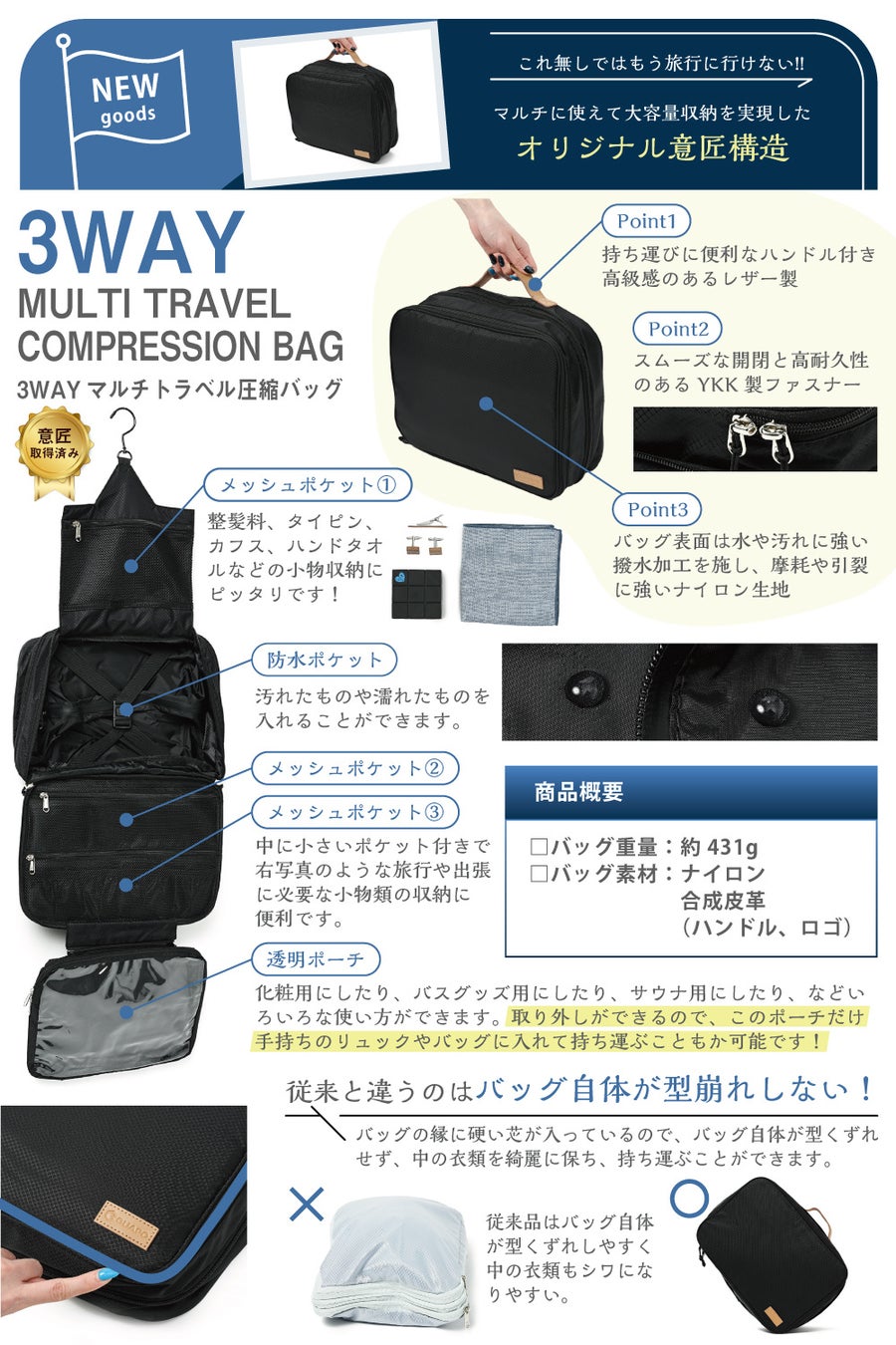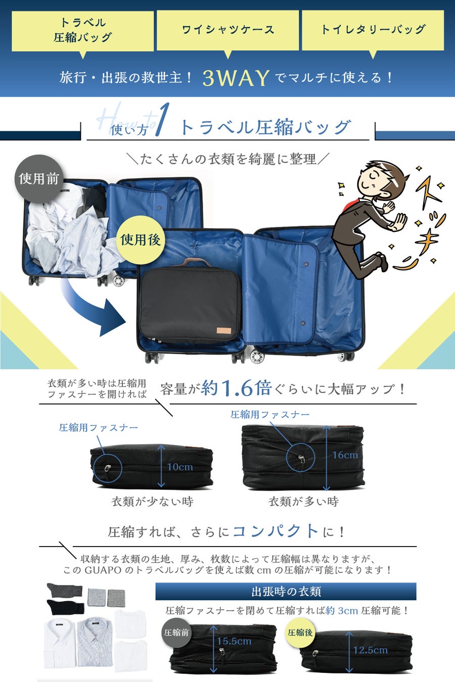 大容量収納を実現! からの、圧縮してコンパクトに!