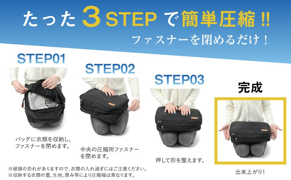 ファスナーで簡単圧縮! 〜3ステップ〜
