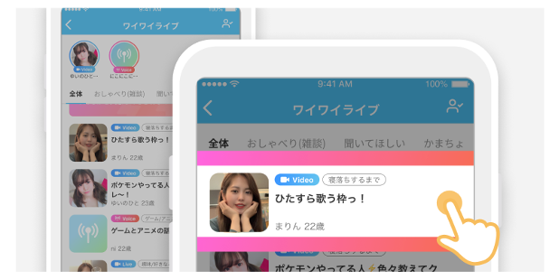 ・ライブ配信中のユーザーを選択