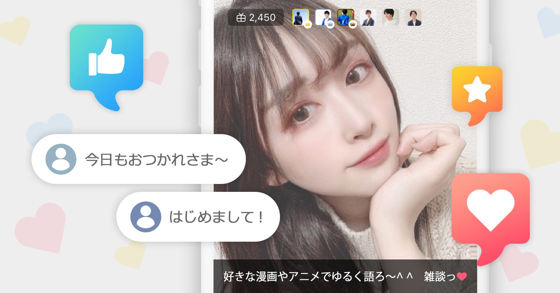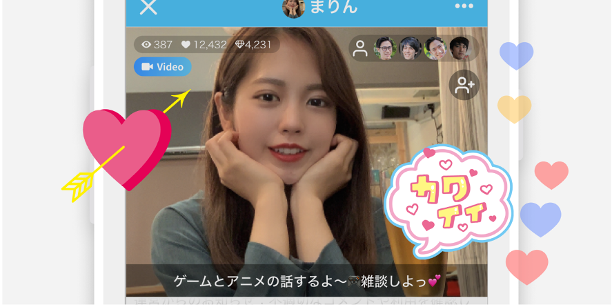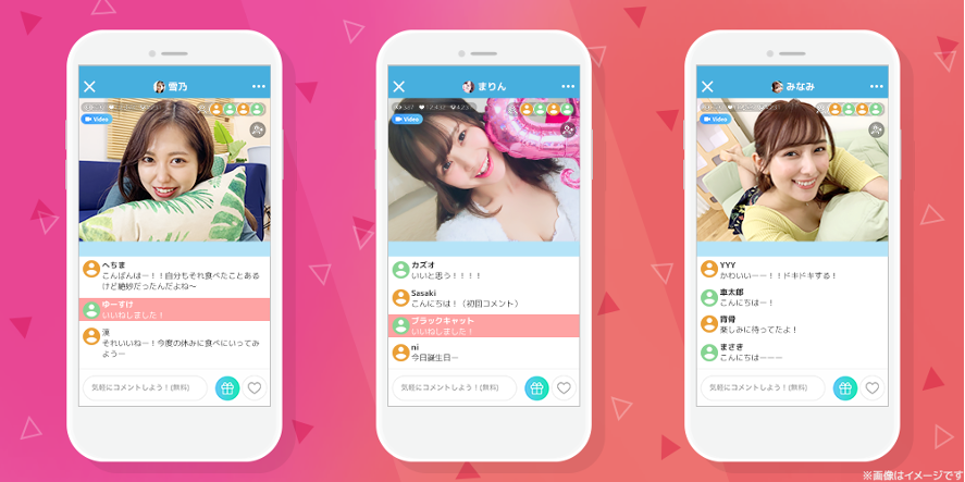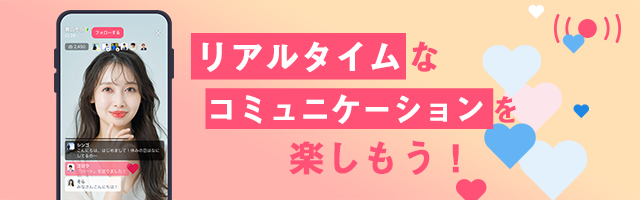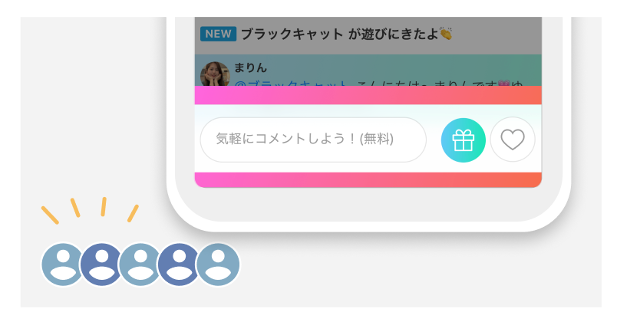 配信中のユーザーと、オンライン上でリアルタイムなコミュニケーションがとれます。