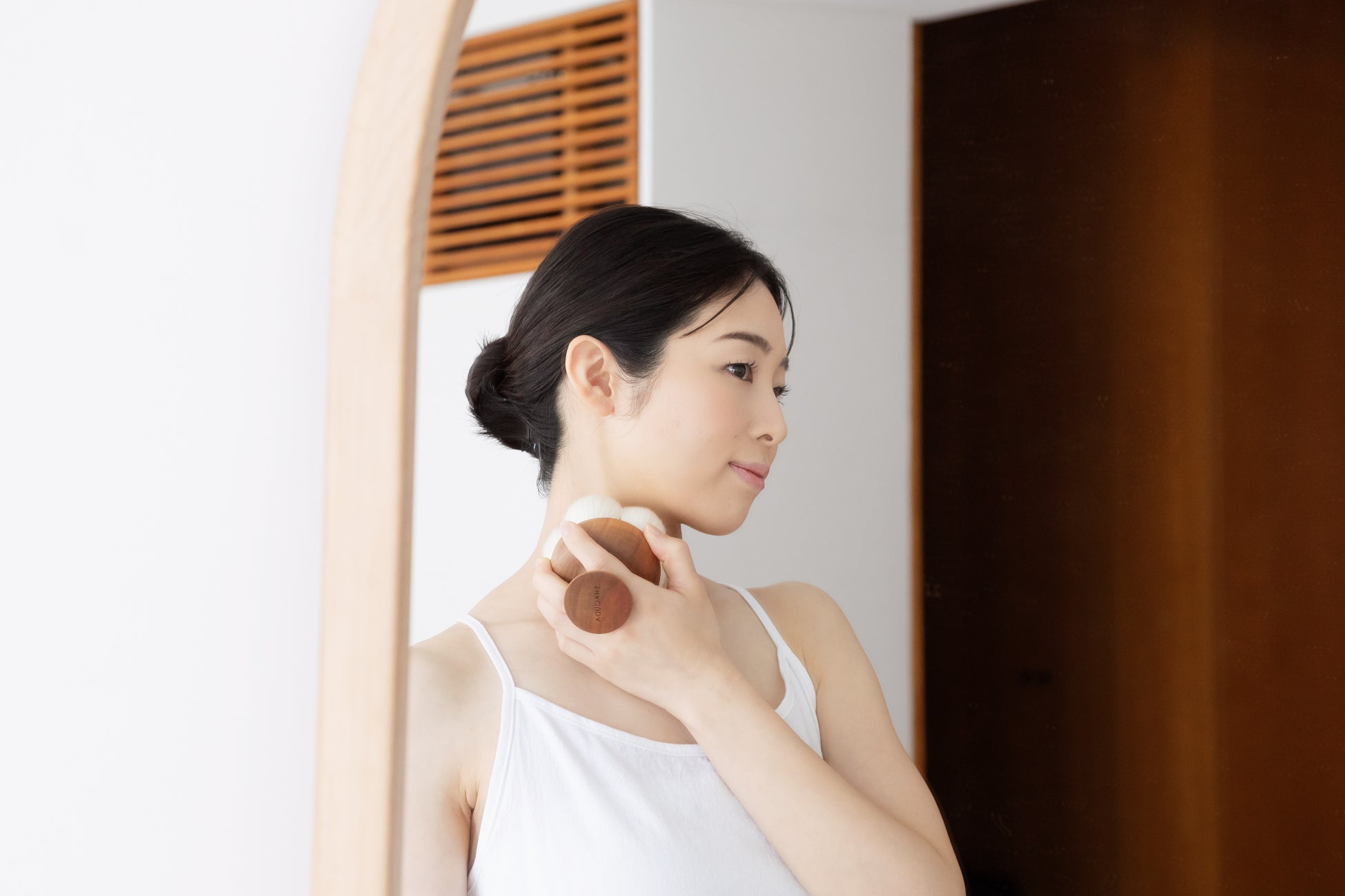乾いた状態では肌本来の力を目覚めさせるドライブラッシングや、リラックスに