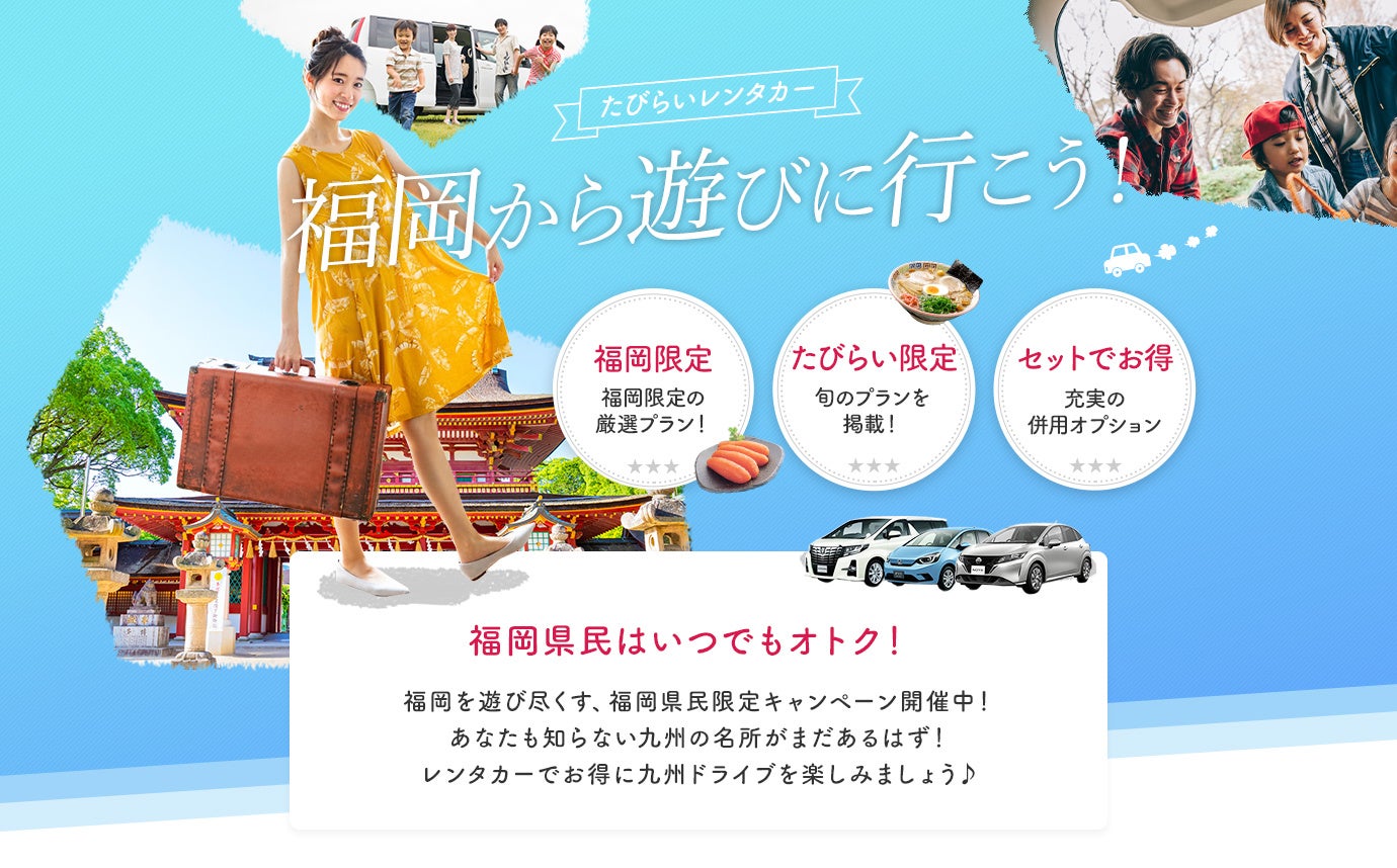 【福岡県民向けのオトクなキャンペーン開始】「たびらい」なら福岡県民はいつでもレンタカー予約がお得に!