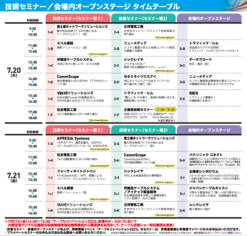 ● 技術セミナー・会場内オープンステージ参加申込 ≫ https://www.catv-f.com/pg2023/seminar/