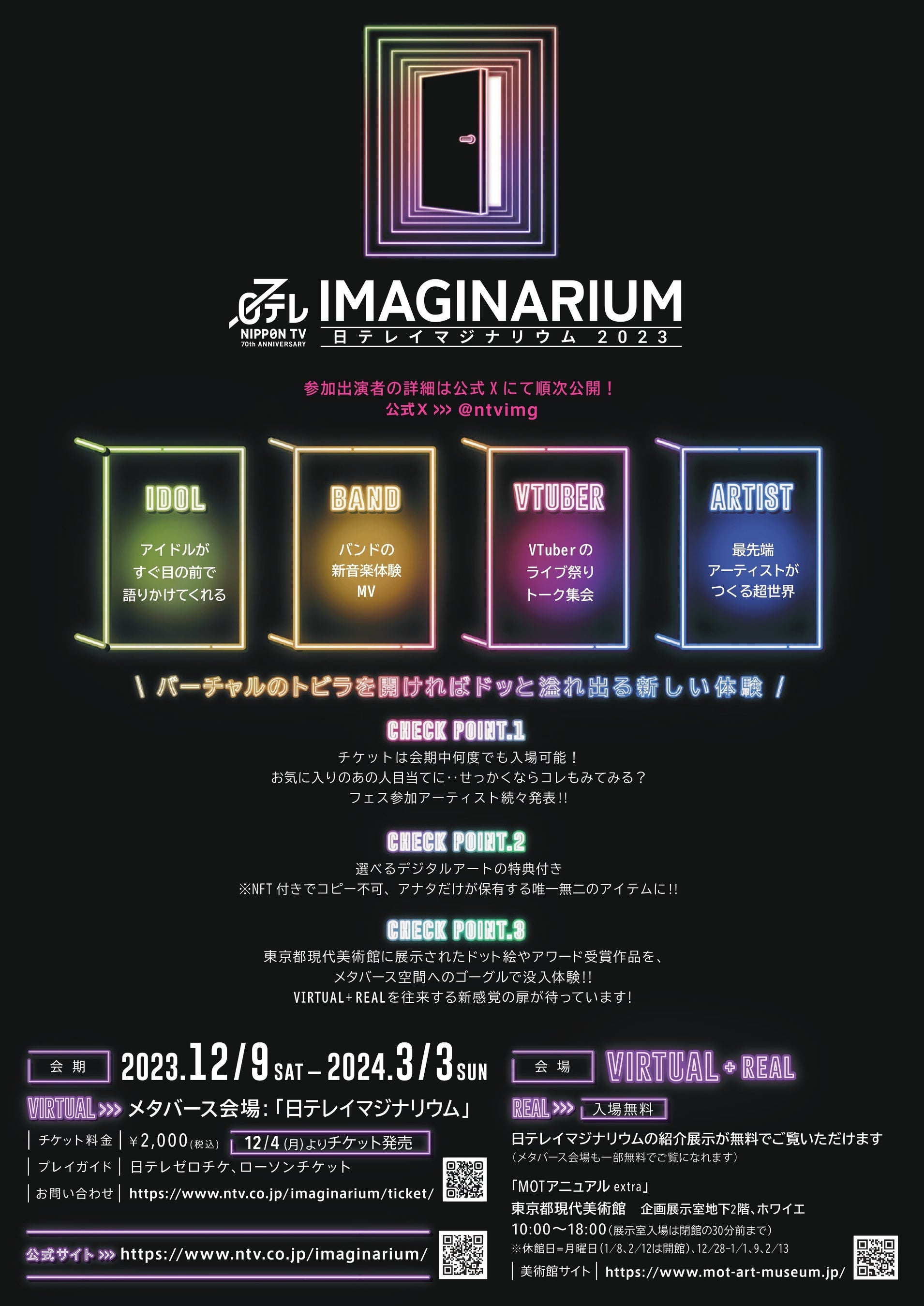 日本テレビ放送網株式会社は、開局70年を記念して新しいメタバース空間「日テレイマジナリウム」を設置し、さまざまなアート&エンターテインメントが集まるフェスイベントを開催いたします。