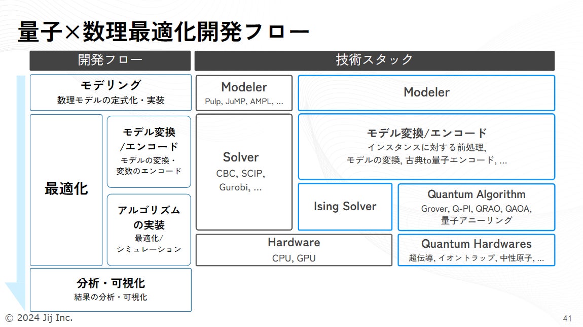 昨今世界中で急速に発展する量子市場に対して、Jijの独自の視点で、数理最適化の基礎から量子デバイスの現状や課題、Jijが支援する領域や研究の詳細紹介まで幅広いテーマで60分お話しさせて頂きました。