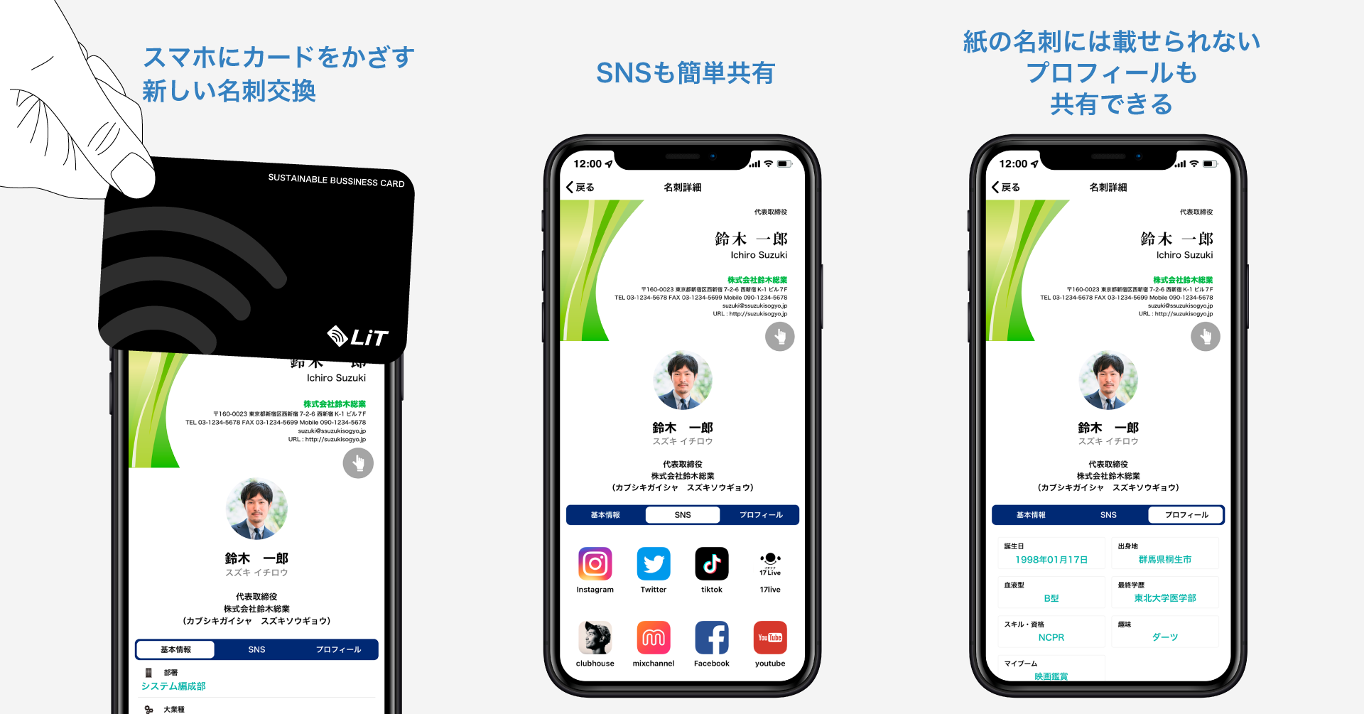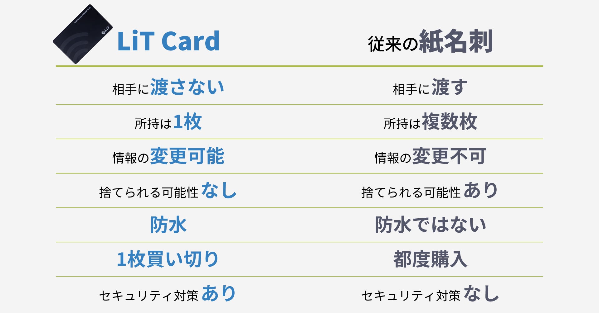 【まさに次世代の名刺(SDGs)】スマートフォンにかざすだけの次世代名刺「LiT Card」を発売、及び名刺管理アプリ「LiT App」を提供開始