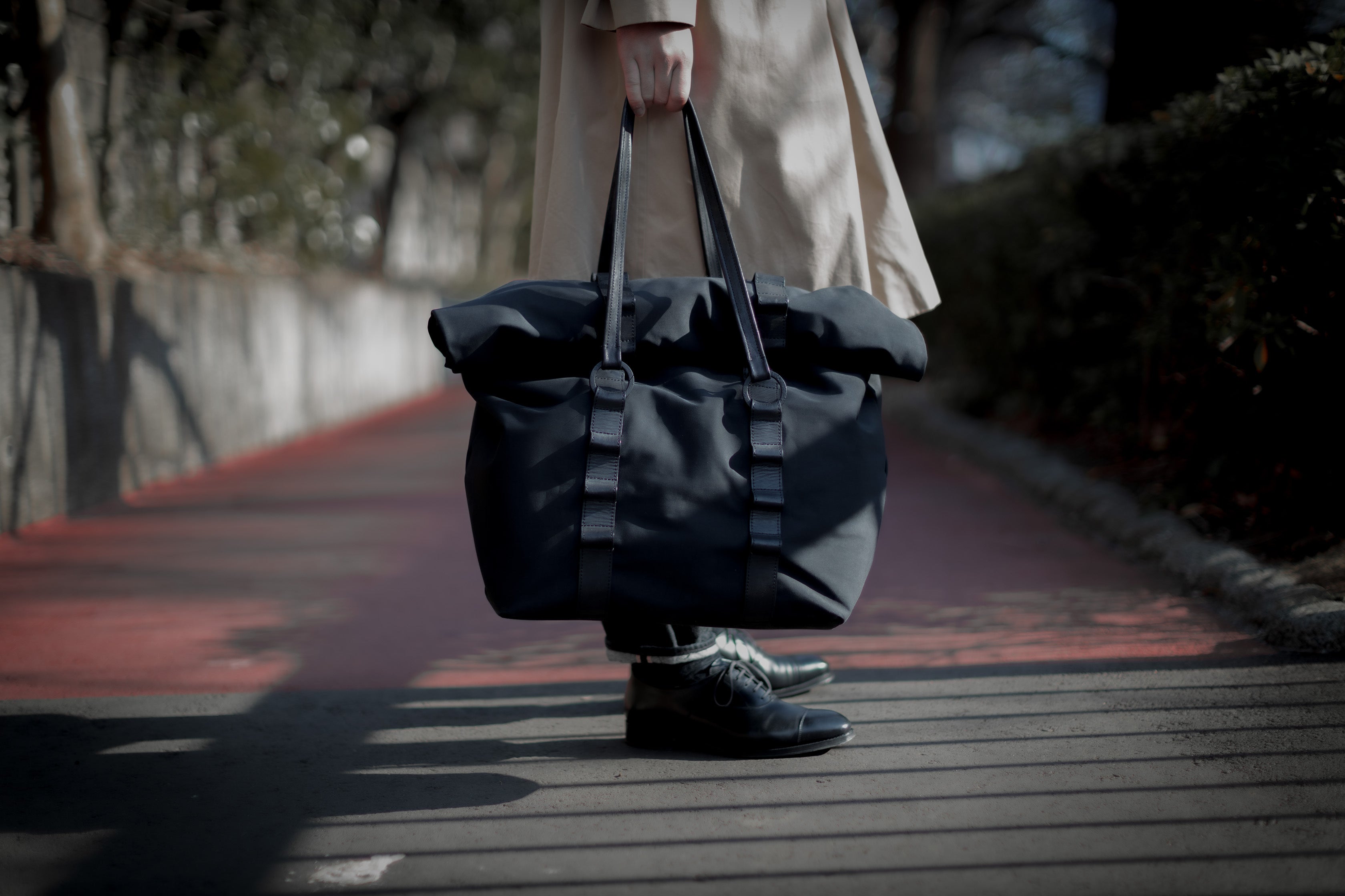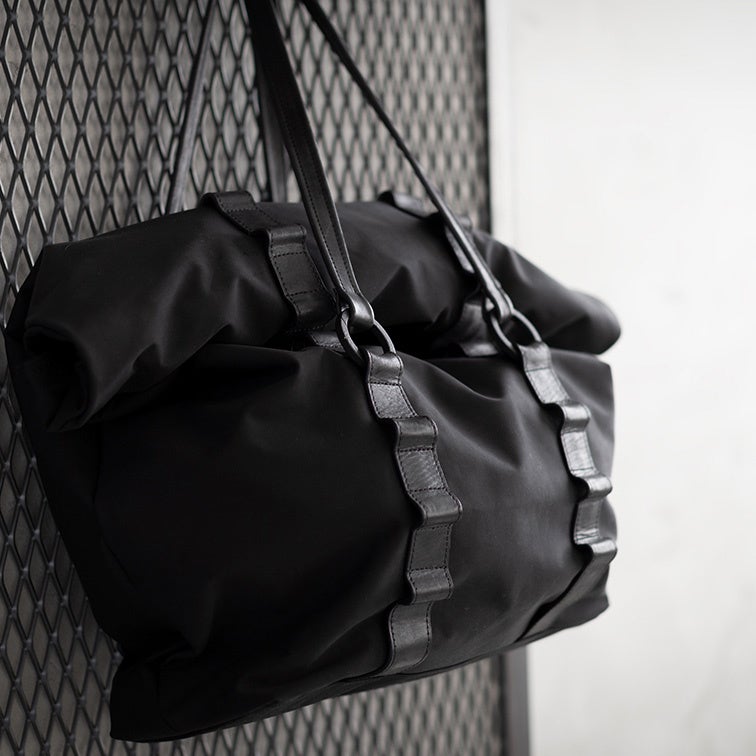 ファーストコレクションのVoyage(ヴォヤージュ)は、ハンドルの場所を自由に変更でき、ワイヤーを内蔵した本体によりロールトップはもちろん、フラップバッグ・縦型トートのような使い方も可能にする。