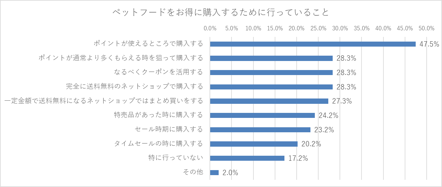 設問:あなたがペットフードをお得に購入するために主に行っていることを教えてください。