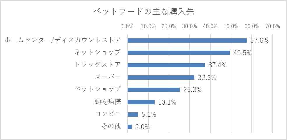 設問:あなたはどこでペットフードを購入していますか?主に購入するところをお答えください。(※ペットフードはおやつを含む)