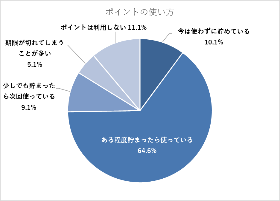 「ある程度貯まったら使っている」が圧倒的に多く64.6%となりました。