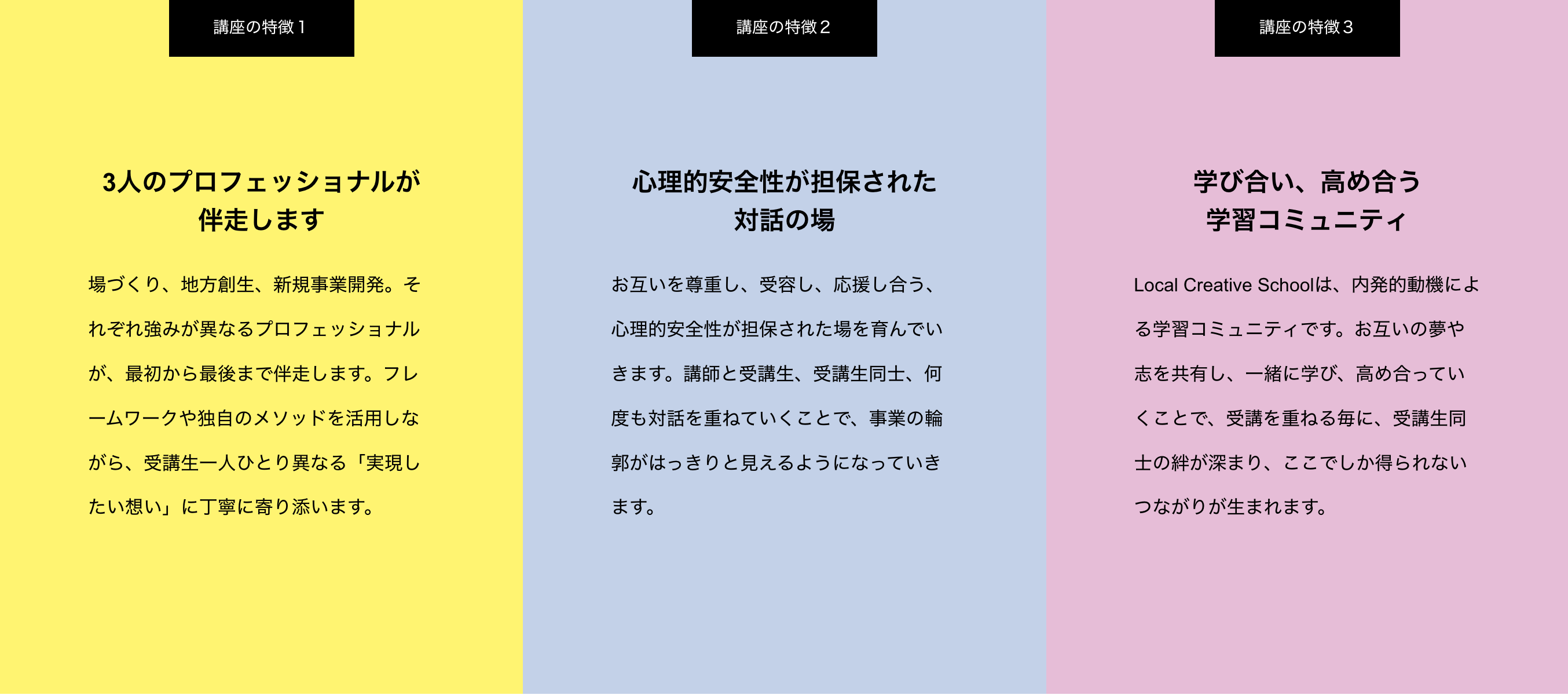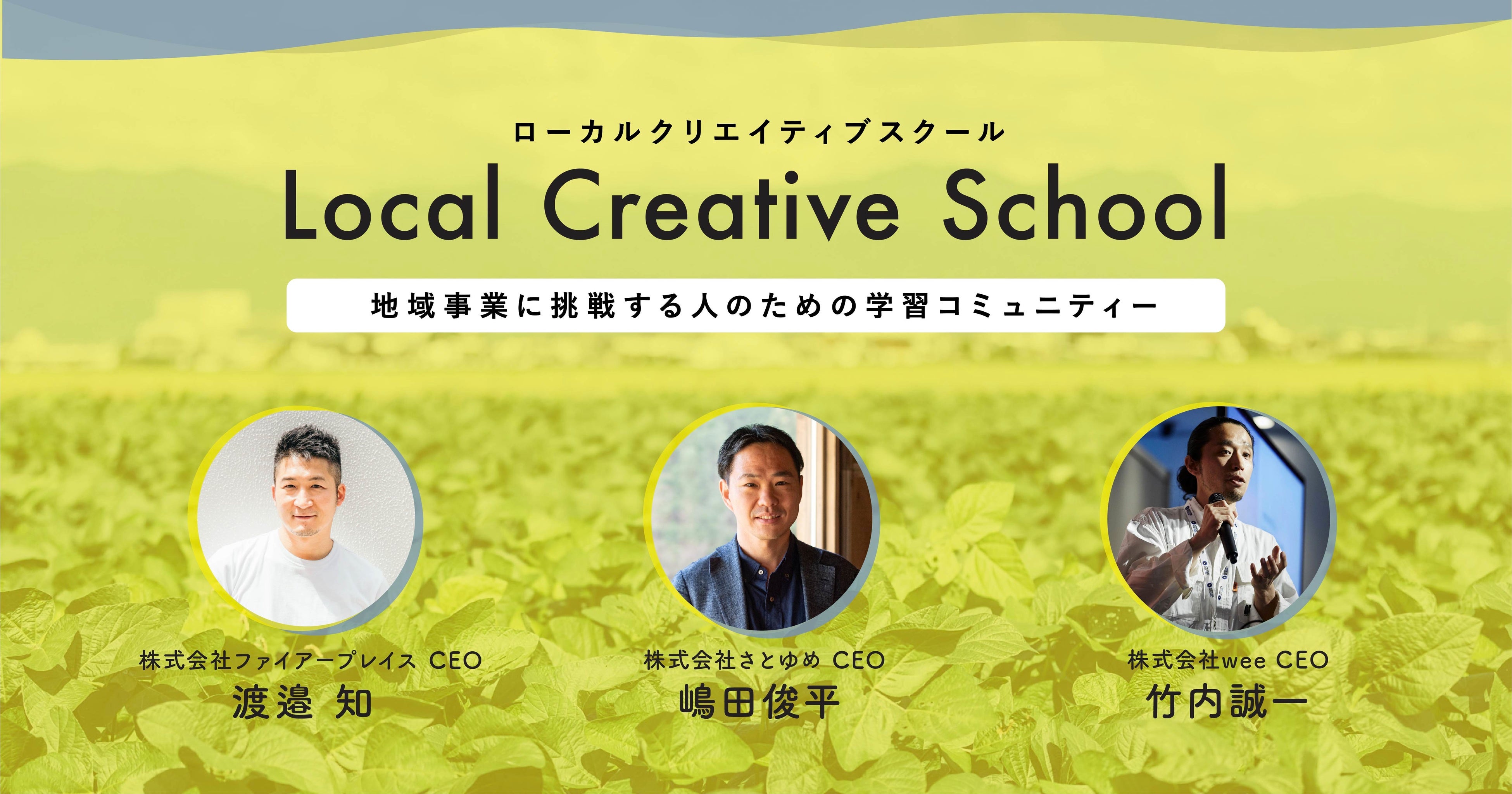 人と人のつながりをデザインする、コミュニティデザインのプロフェッショナル、株式会社ファイアープレイス(本社:神奈川県川崎市、代表取締役社長:渡邉 知、以下:ファイアープレイス)は、人を起点に全国40エリアで地方創生事業のプロデュースを行う株式会社さとゆめ(代表取締役:嶋田俊平)と、新規事業開発に特化した事業プロデュース会社、株式会社wee(代表取締役:竹内誠一)とともに、この度、対話型オンライン講座「Local Creative School」の第3期を開催します。それに伴い、3期生の募集を開始いたします。