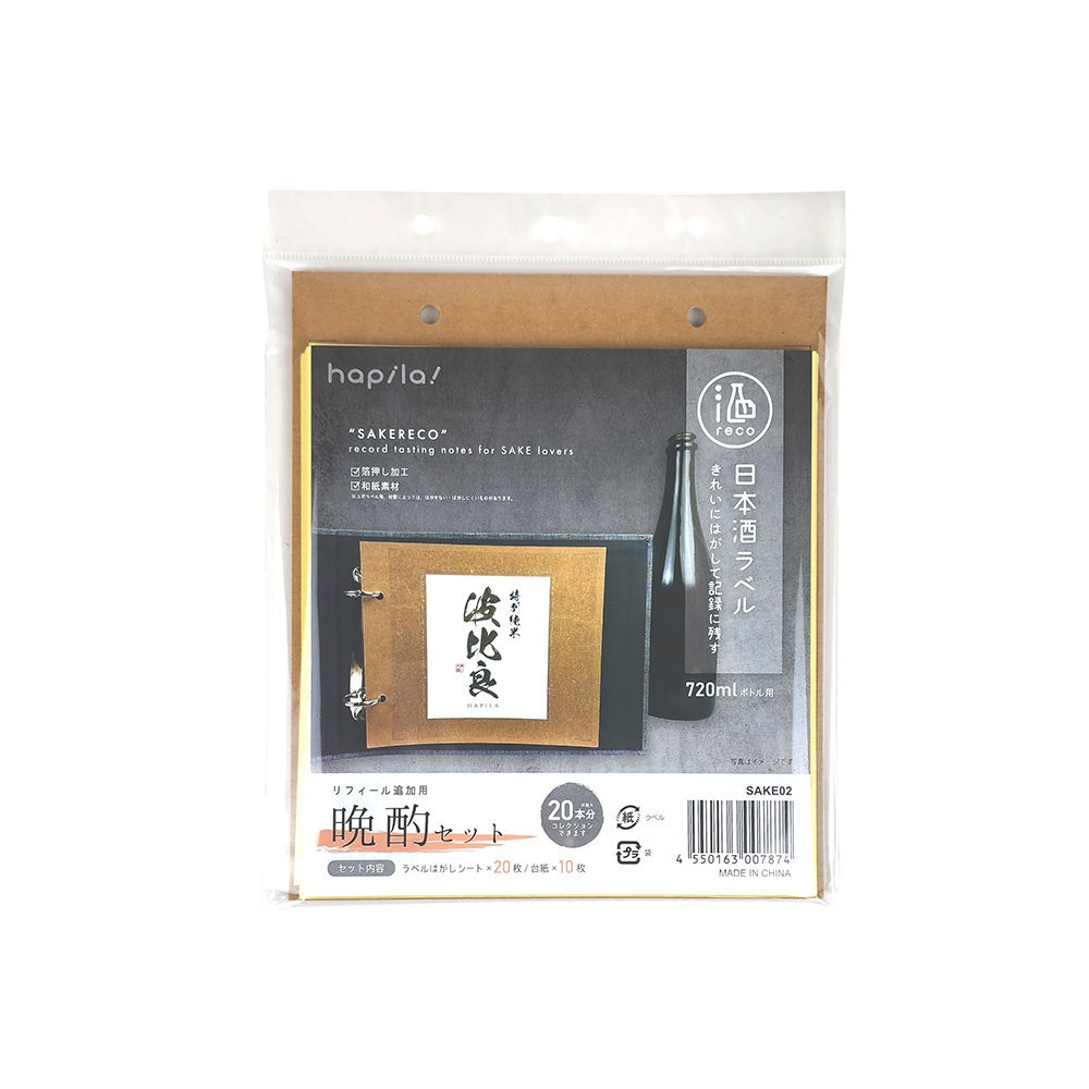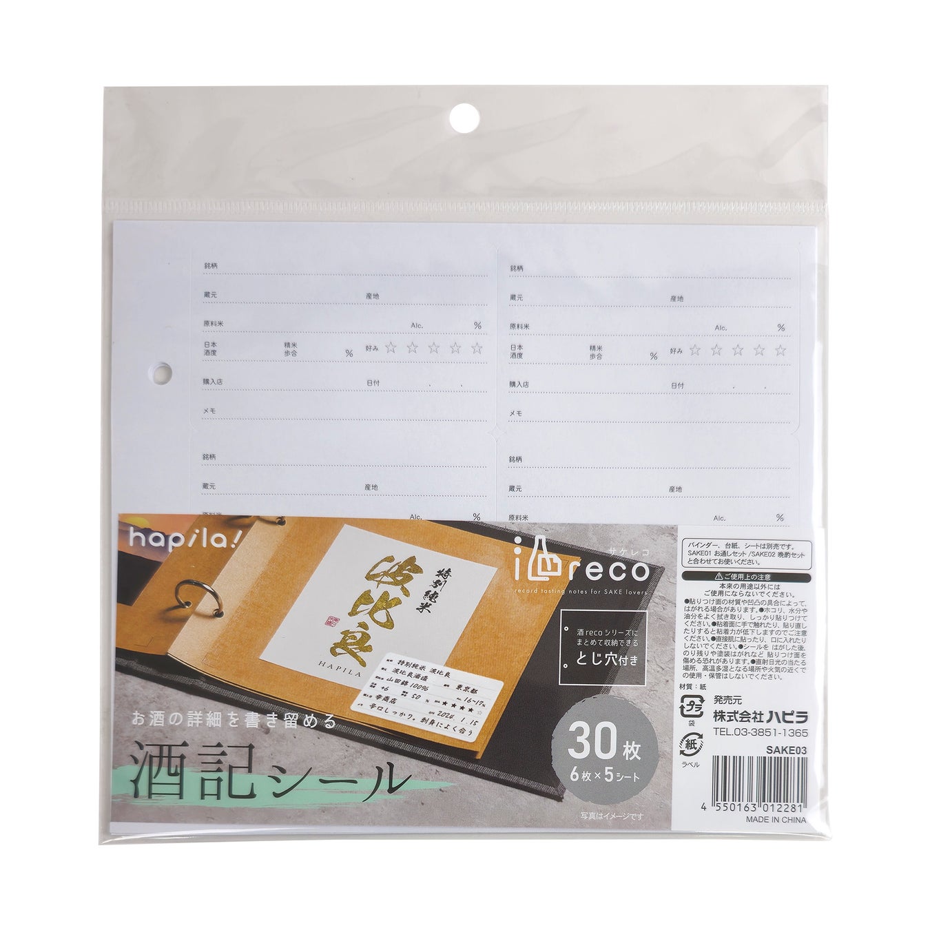 お酒の詳細を書き留められる、日本酒用の記録シール。30回分。酒recoシリーズにまとめて収納できるとじ穴付き。