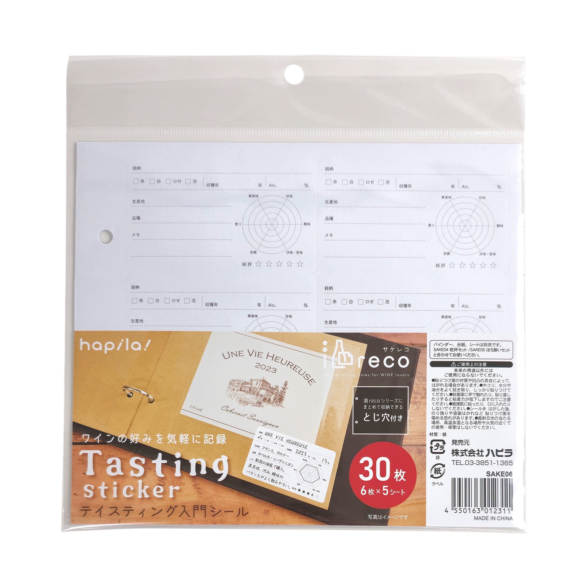 ワインの好みを気軽に記録できる、テイスティング入門シール。30回分。酒recoシリーズにまとめて収納できるとじ穴付き。