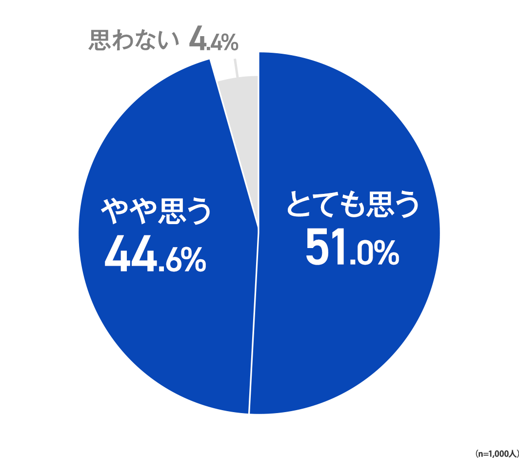 新型コロナの感染拡大前と比べて、心の不調を抱える患者は増加傾向にあると思うかを聞いたところ、95.6%の医師が「増加傾向にあると思う」(とても思う51.0%+やや思う44.6%)と回答しました。新型コロナの影響で、心の不調を訴える人が増えている実態が、医師への調査で明らかになりました。