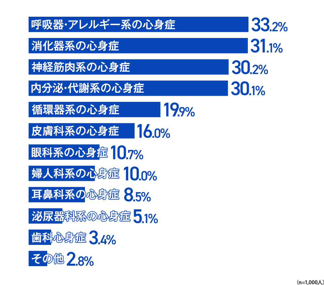 心身症の病態で多いのは「呼吸器・アレルギー系」「消化器系」「神経筋肉系」