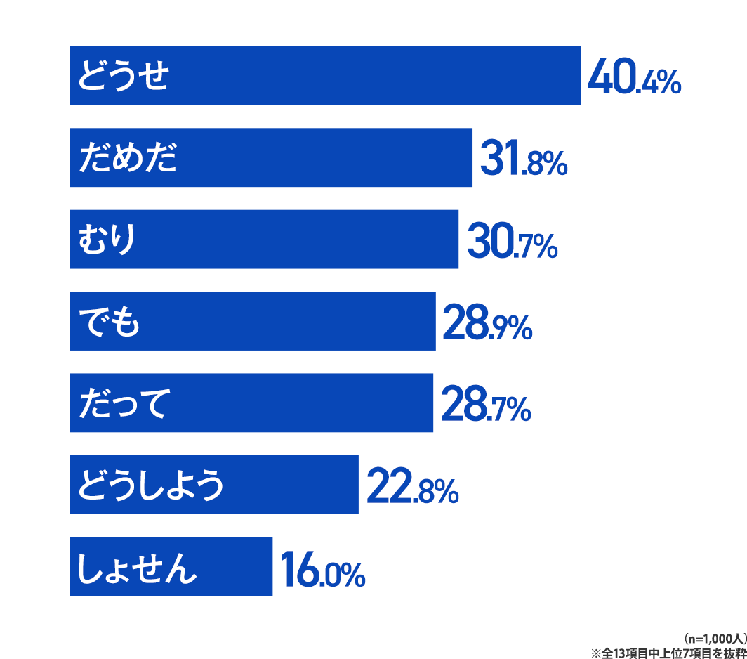 - 共通の口癖は「どうせ」「だめだ」「むり」などネガティブな言葉が上位
