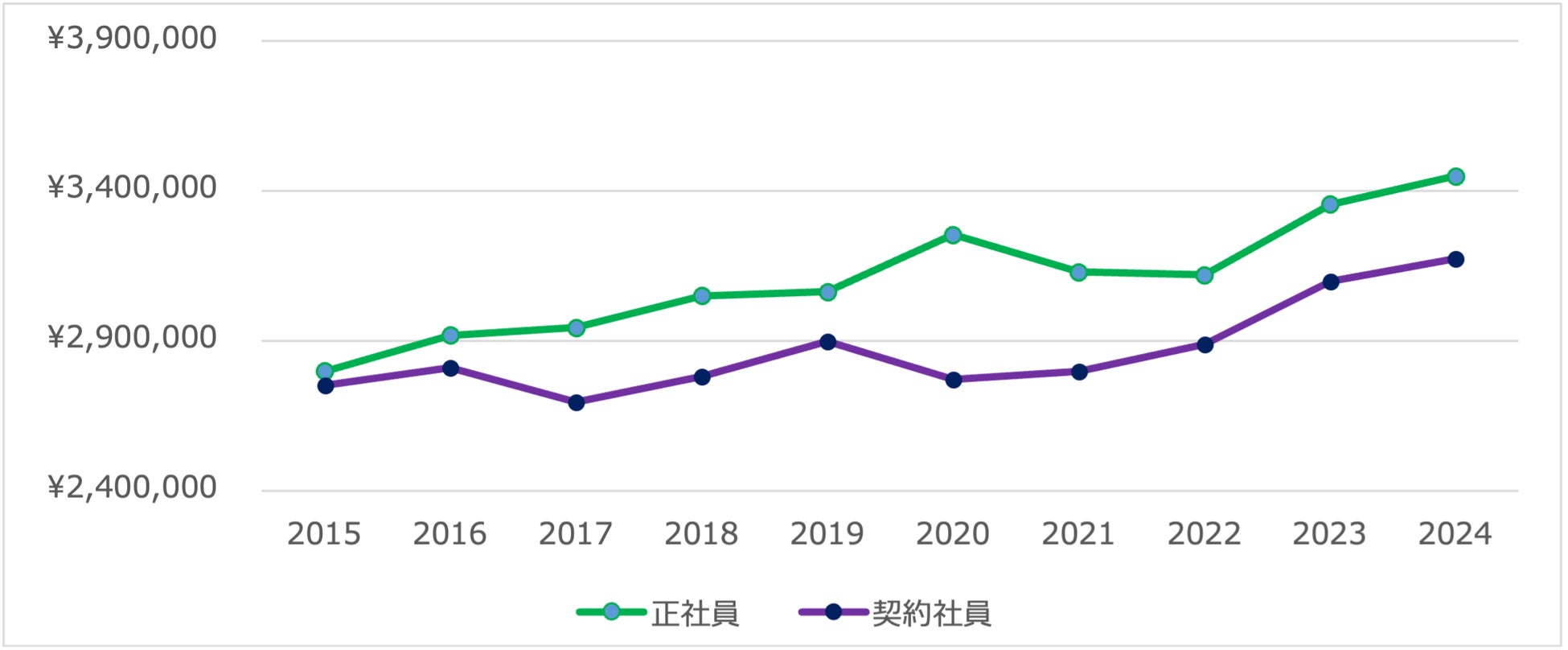 雇用形態別給与額推移:平均年収(正社員・契約社員)