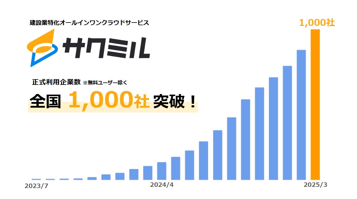 建設業に特化したクラウドサービス「サクミル」、リリース1年9ヶ月で正式利用企業数が1,000社を突破