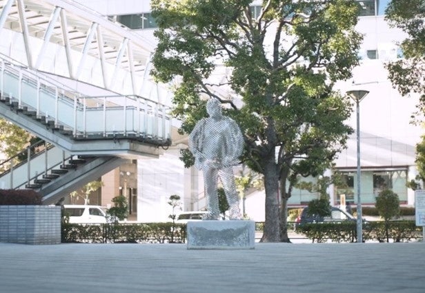 匿名の人物の影を抽出した作品。一見、ステンレスの強い質感が目に飛び込んでくるが、遠くからみると景色に馴染み溶け込む。時間帯によってさまざまな表情に変化。見る人の価値観を少し作用するような、何で出来ているのか、なんでこういう風に見えるのか、と考えを巡らせるように楽しんでもらえたら。