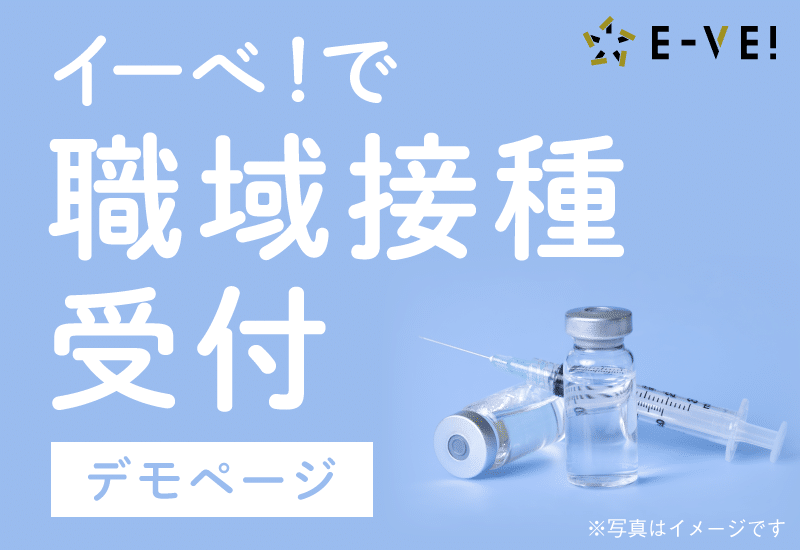 新型コロナウイルスワクチンの職域接種の受付管理フォームに「イーべ!」を採用いただいています。自治体、企業において、スムーズな接種予約・意思確認を。迅速・柔軟なカスタマイズ対応中。