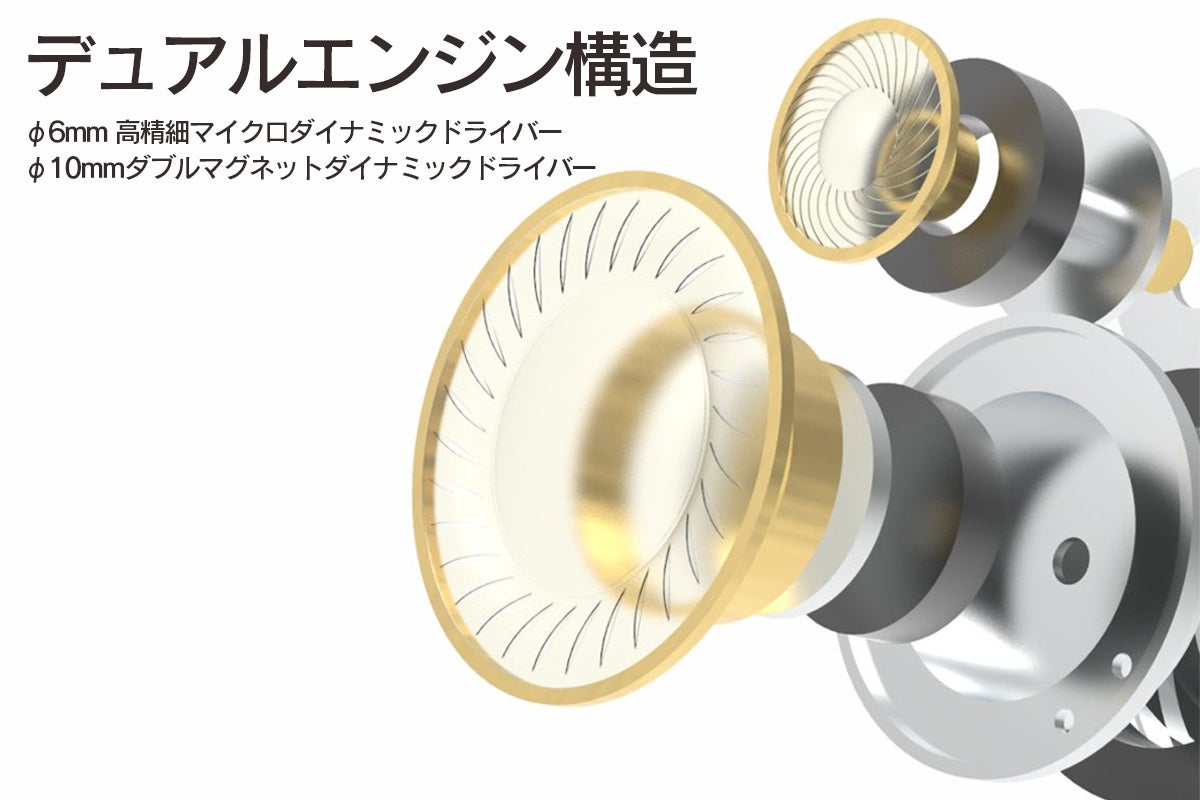 複合ポリマーダイアフラムを採用したデュアルドライバー搭載