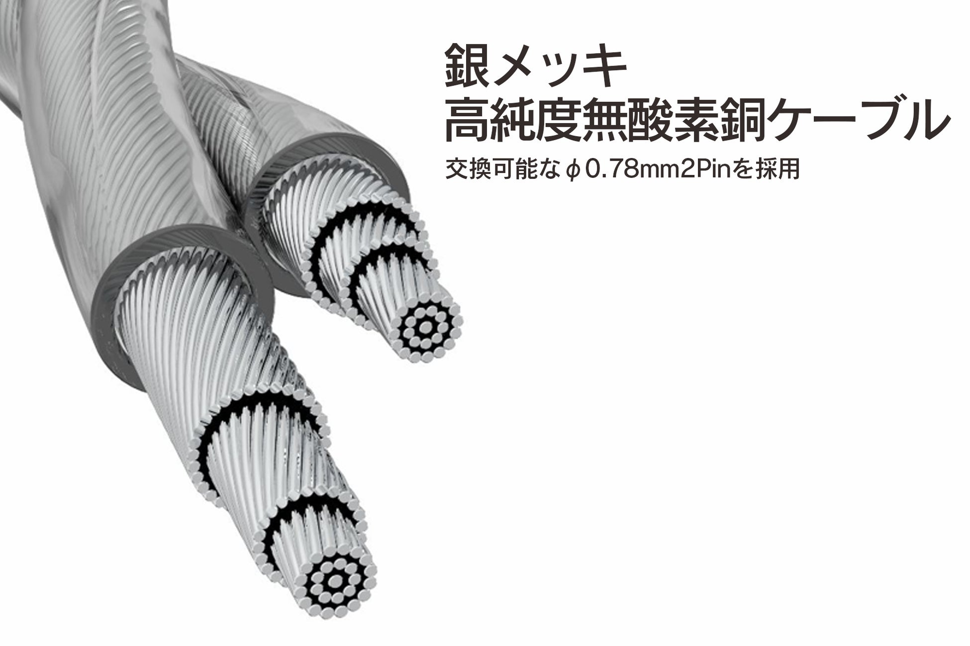 2Pin(φ0.78mm)タイプの交換可能な銀メッキ銅ケーブル採用