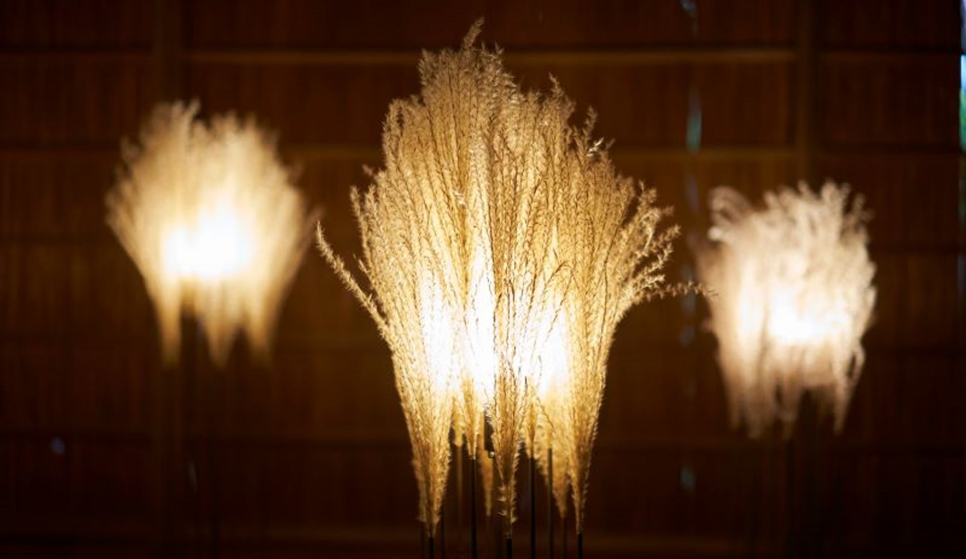 小金井公園のイチョウをテーマにしたアートフラワーのイチョウのランウェイとイチョウアーチが登場します。約15mにもおよぶイチョウのレッドカーペットならぬ黄金色のランウェイは、江戸東京たてもの園までのメインストリートを優しく照らします。その上には、“光る帆”を蓄えたススキやパンパスグラス、秋の草花を配したアートフラワーを使用した、高さ3.5mのイチョウのアーチが頭上に配置され、上下左右どこを見渡しても秋を感じられる空間をお楽しみいただけます。