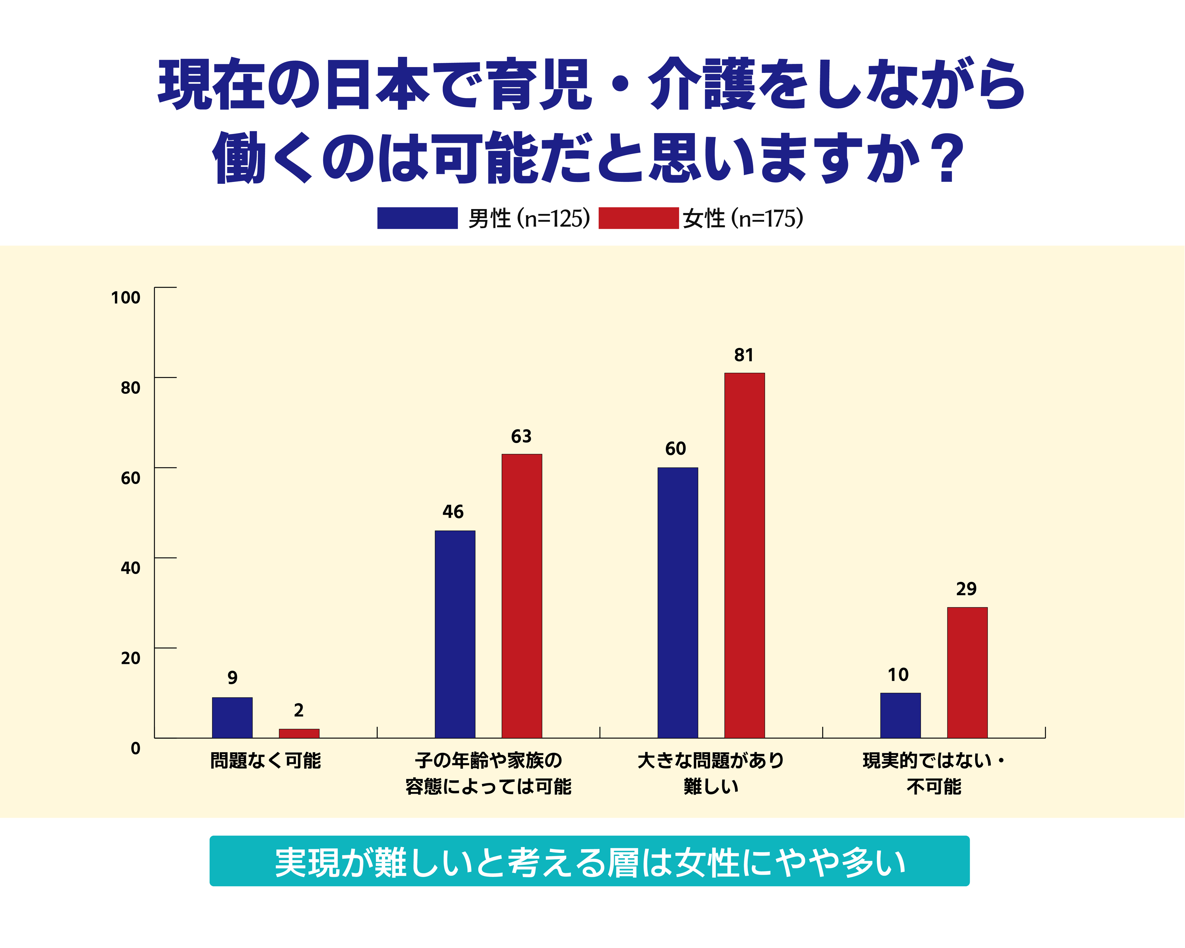 育児・介護と仕事の両立は無条件では不可能とする声が多数