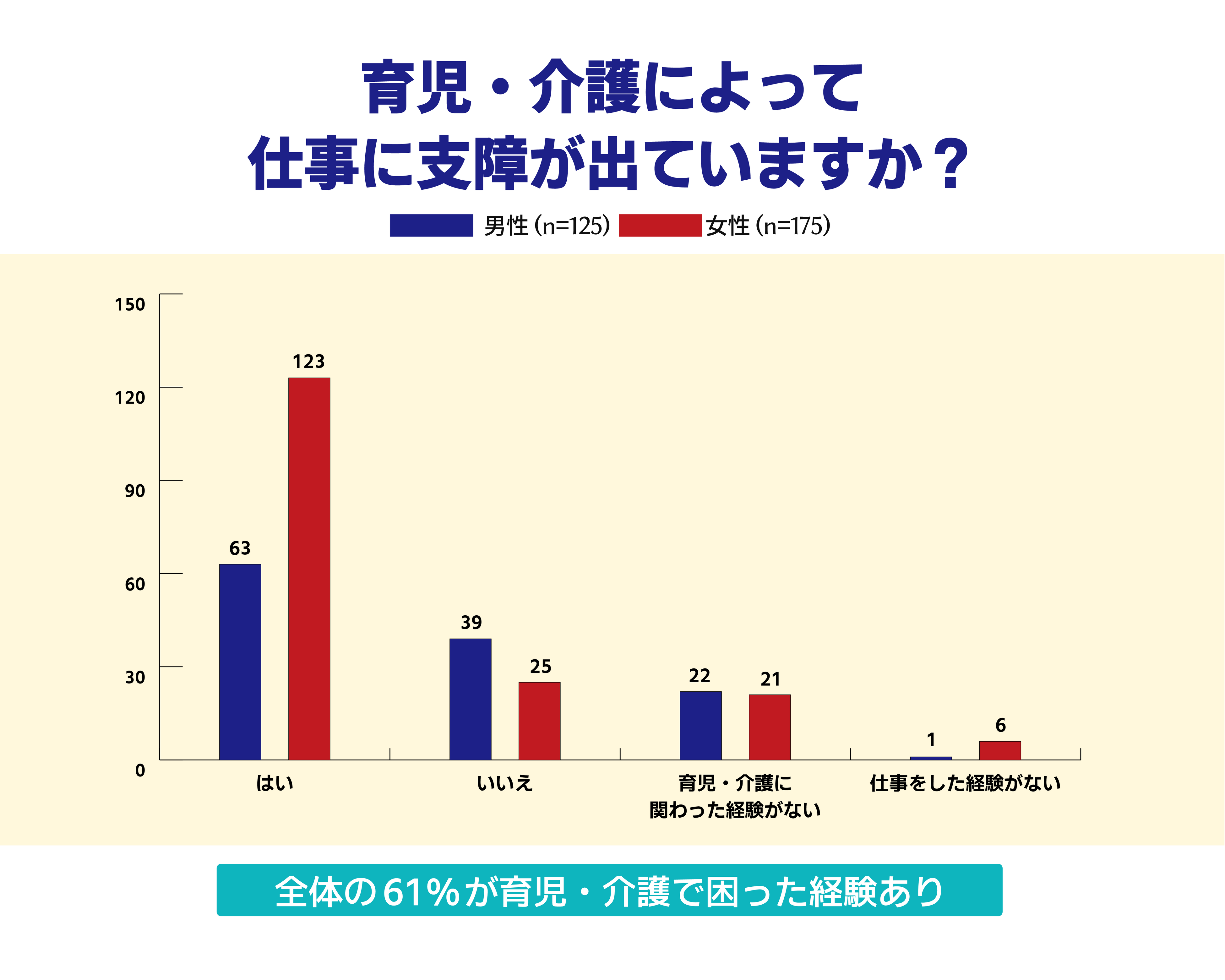 【300人にアンケート】「育児・介護」と「仕事」は両立できる?|61%が「仕事に支障がある」と回答
