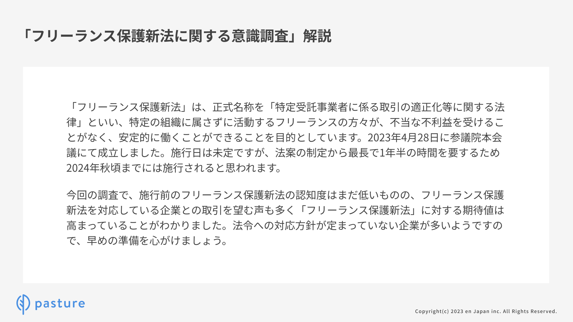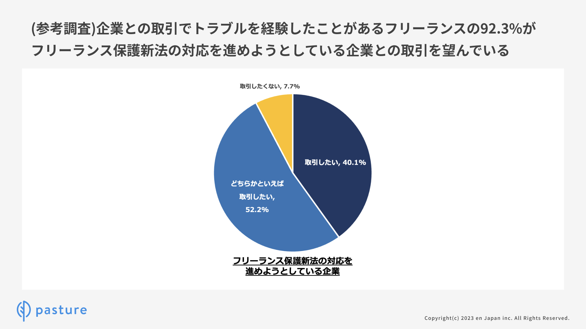 フリーランスの87.8%が、フリーランス保護新法の対応を進めようとしている企業との取引を希望 pasture(パスチャー)調べ「フリーランス保護新法に関する意識調査」