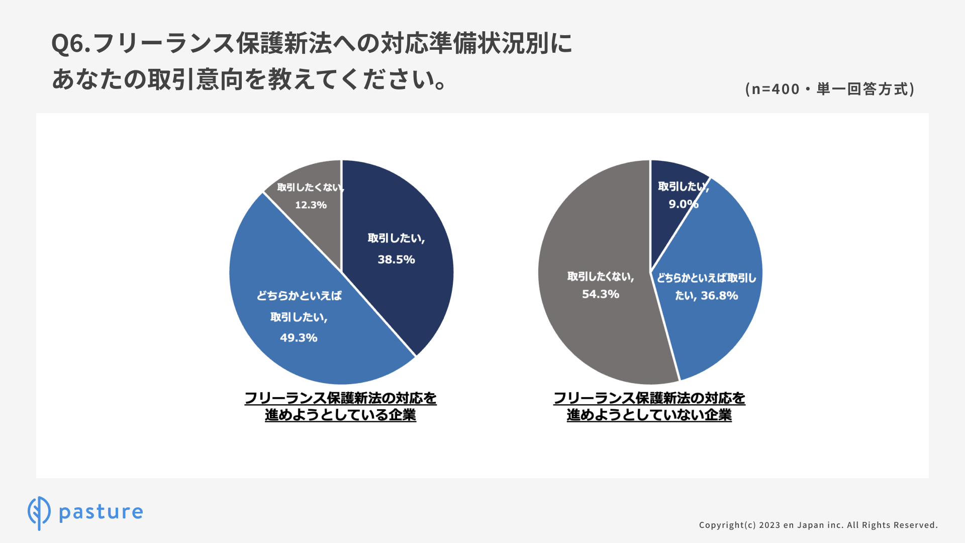Q6.フリーランス保護新法への対応準備状況別に、あなたの取引意向を教えてください。(n=400・単一回答方式)