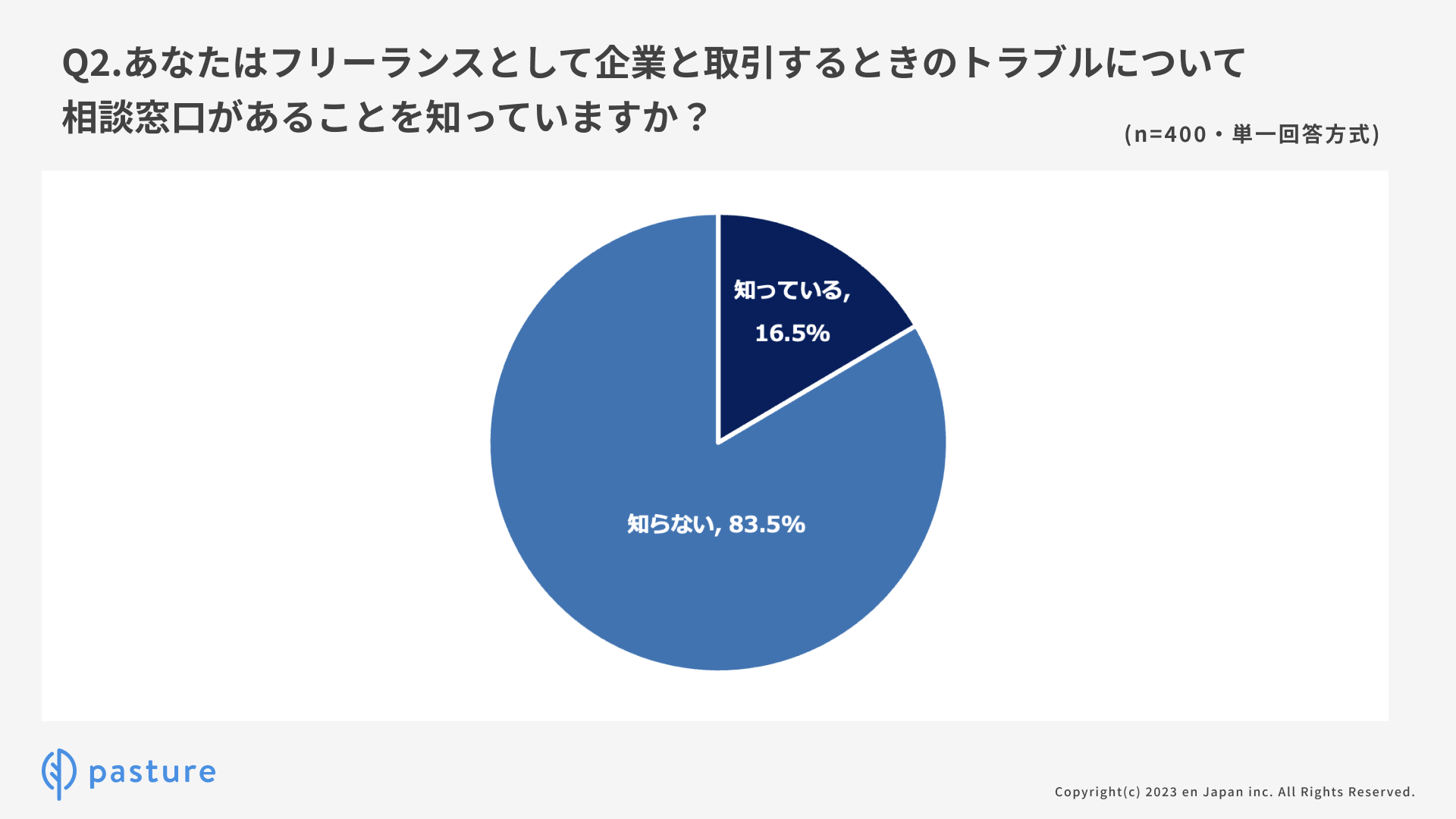 ・フリーランスの83.5%がトラブルについての相談窓口を知らないと回答