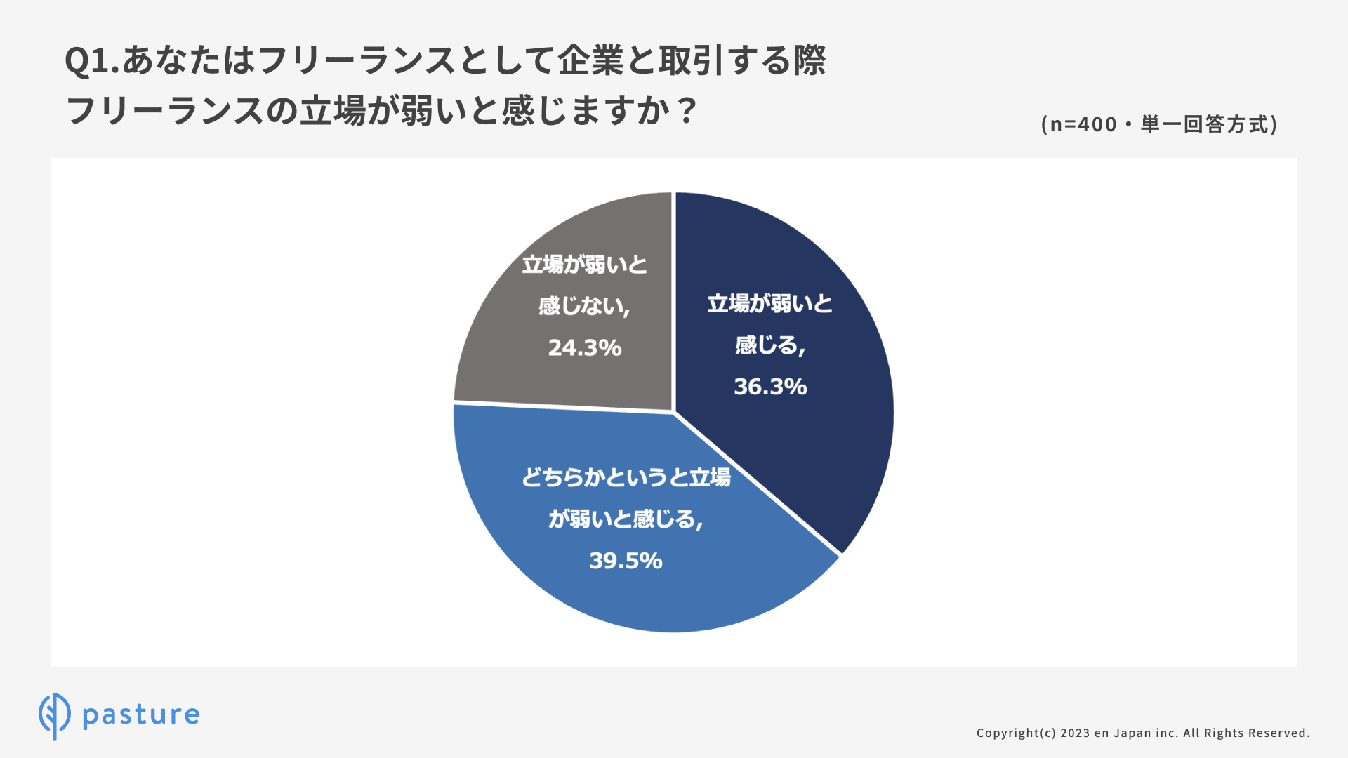 Q1.あなたはフリーランスとして企業と取引する際、フリーランスの立場が弱いと感じますか?(n=400・単一回答方式)