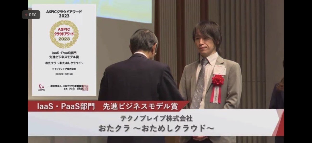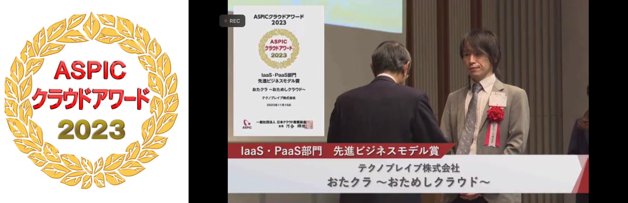 テクノブレイブ株式会社(本社:東京都千代田区、代表取締役社長:西村 陽一、以下テクノブレイブ)が提供する、企業のクラウド移行を支援するソリューションサービス【おたクラ ~おためしクラウド~】が2023年11月15日に開催された、一般社団法人日本クラウド産業協会(ASPIC)主催の第17回「ASPICクラウドアワード2023」において、IaaS・PaaS部門の先進ビジネスモデル賞を受賞しました。