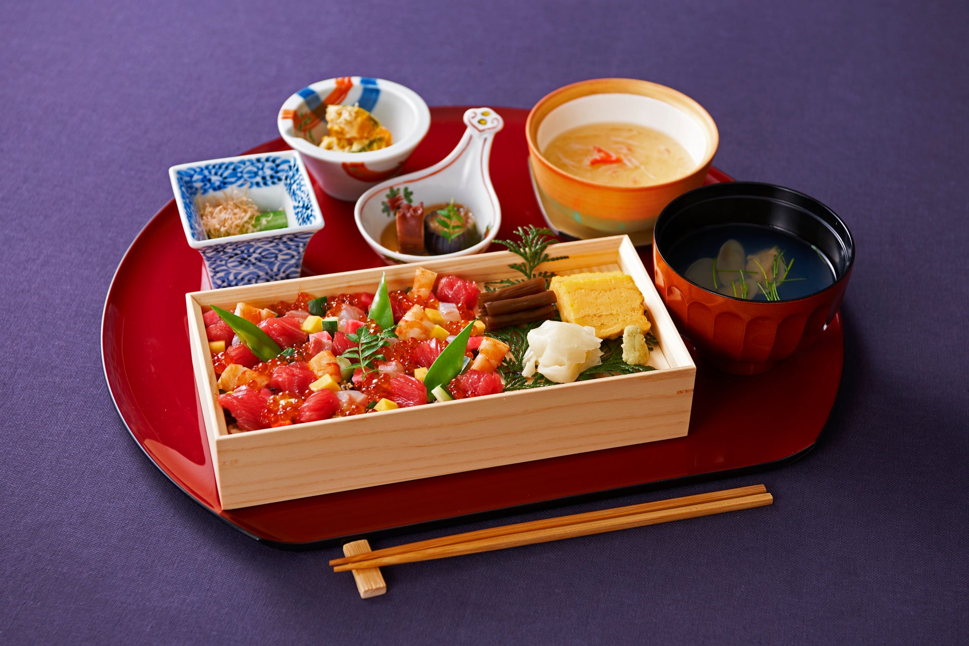 日本全国から仕入れる生本鮪のばらちらしを主軸に、京ばんざいと日本酒を。
