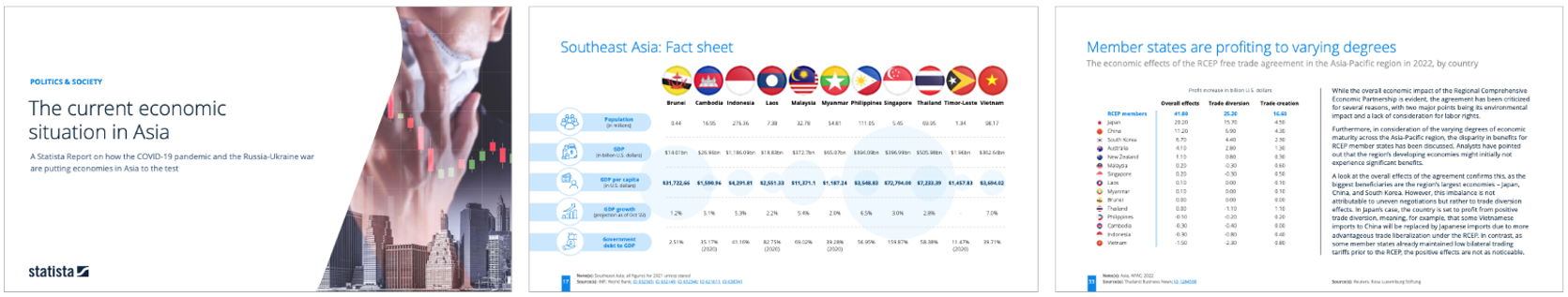 2023年のアジア各国のGDP成長は-3%から+6.2%と格差 超巨大経済連携として注目のRCEP協定の恩恵は? Statistaがアジアの経済予測を発表