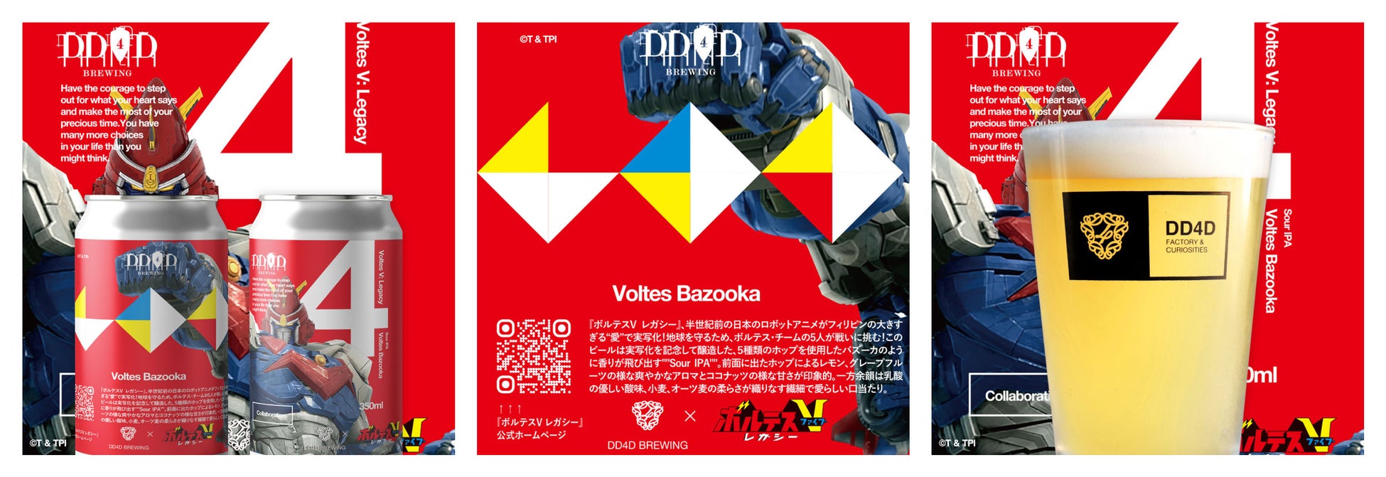 日本が誇る伝説のロボットアニメ「超電磁マシーン ボルテスV」が、映画「ボルテスV レガシー」として実写化され、10月18日(金)に公開されます。その熱狂に応えたビールが誕生!DD4D BREWINGは、この特別な瞬間を祝して、「ボルテスV レガシー」とのコラボビール「Voltes Bazooka」をリリースします。映画の勇気と冒険をそのままに、ビールで新たな体験をお届けします。