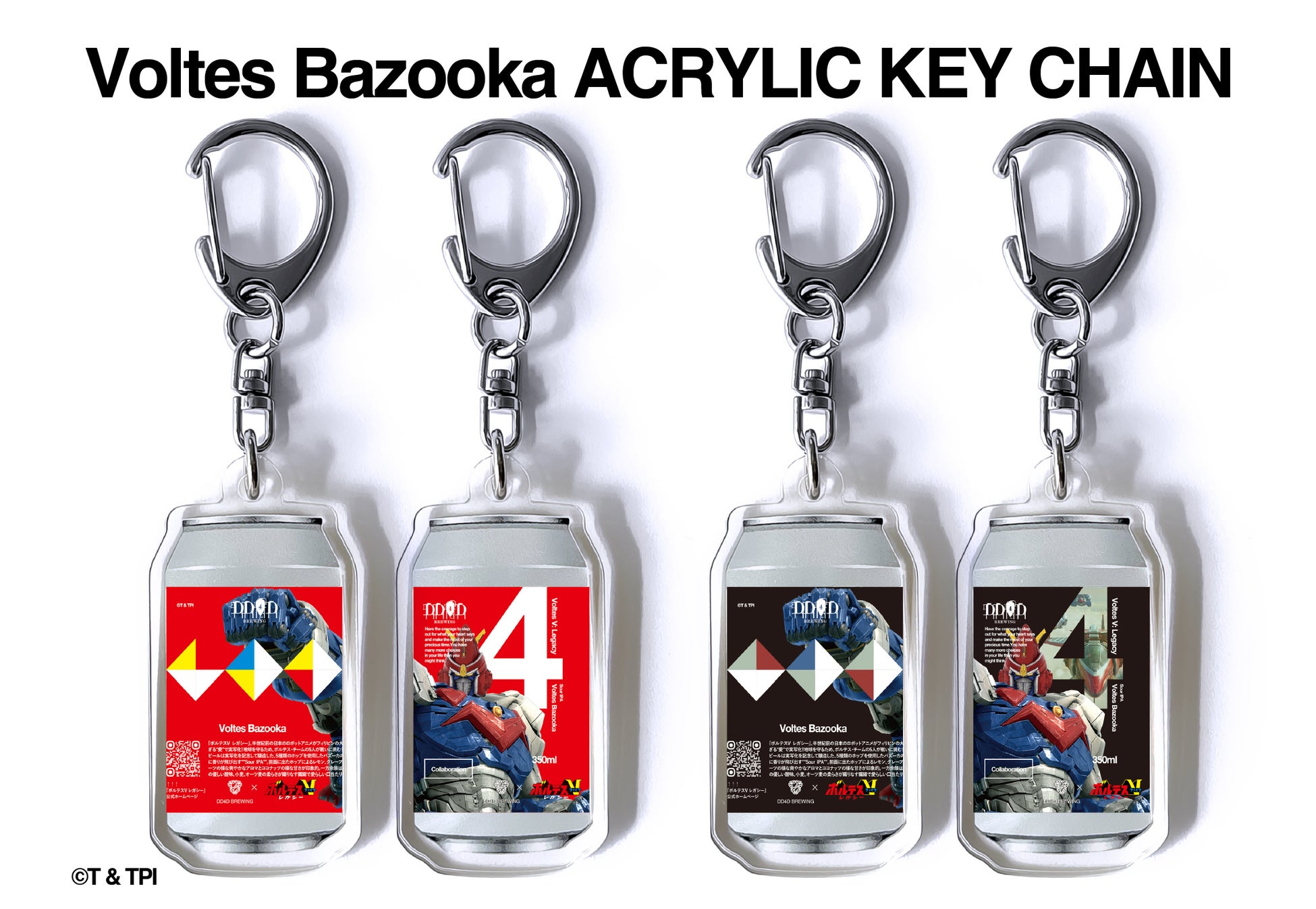 「Voltes Bazooka」の限定ラベルデザインをあしらった、缶ビール型のアクリルキーホルダー。お気に入りのバッグやキーにつけて、コラボのデザインをいつでも楽しむことができます。