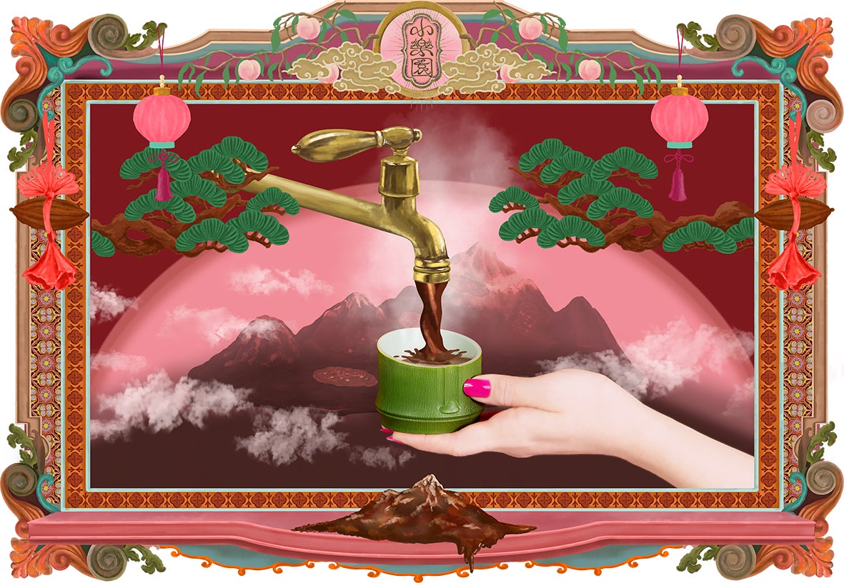 桃源郷の土産物屋「小楽園」の更なる奥地に潜むと噂される珍山幻の「チョコレート山脈」が小楽園ティーサロンにやってきます。