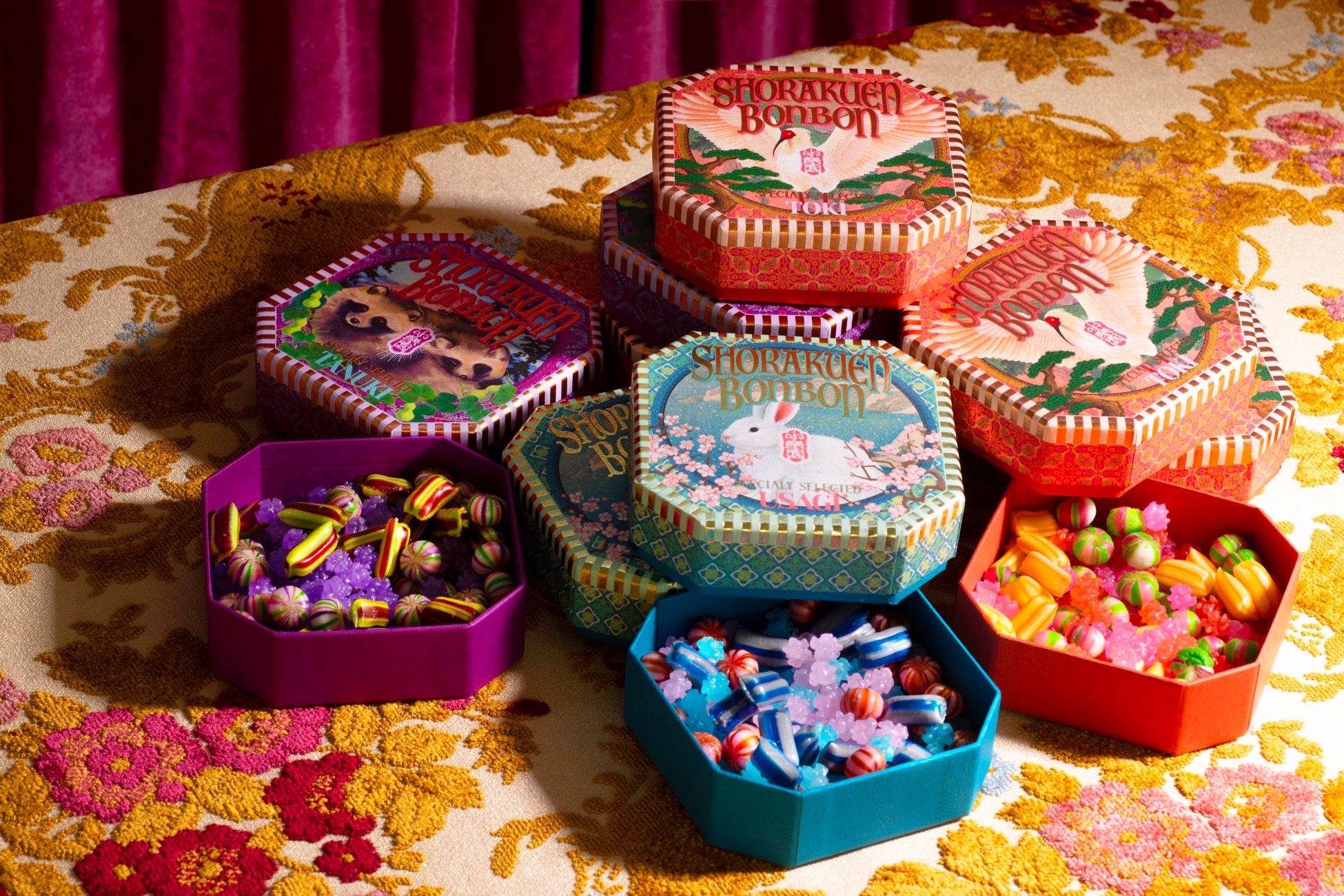 京飴と金平糖を詰め合わせた、まるで宝石箱のような小楽園ボンボンは、日本固有の絶滅危惧種や絶滅種の動物をモチーフにしたパッケージ。その動物をイメージした色とりどりの京飴と金平糖を詰め合わせました。この小楽園ボンボンの売り上げの一部は、日本の絶滅を危惧されている約 3600 種の生き物の保全活動を行う、日本自然保護協会 NACS-J に寄付されます。