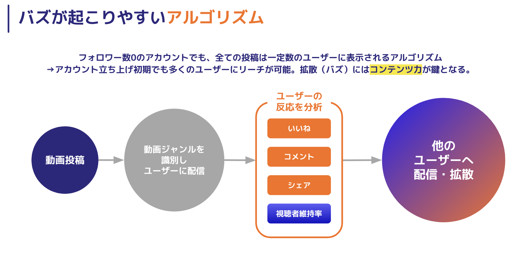TikTokと他のSNSの大きな違いとしてあげられるのが、コンテンツ力があれば