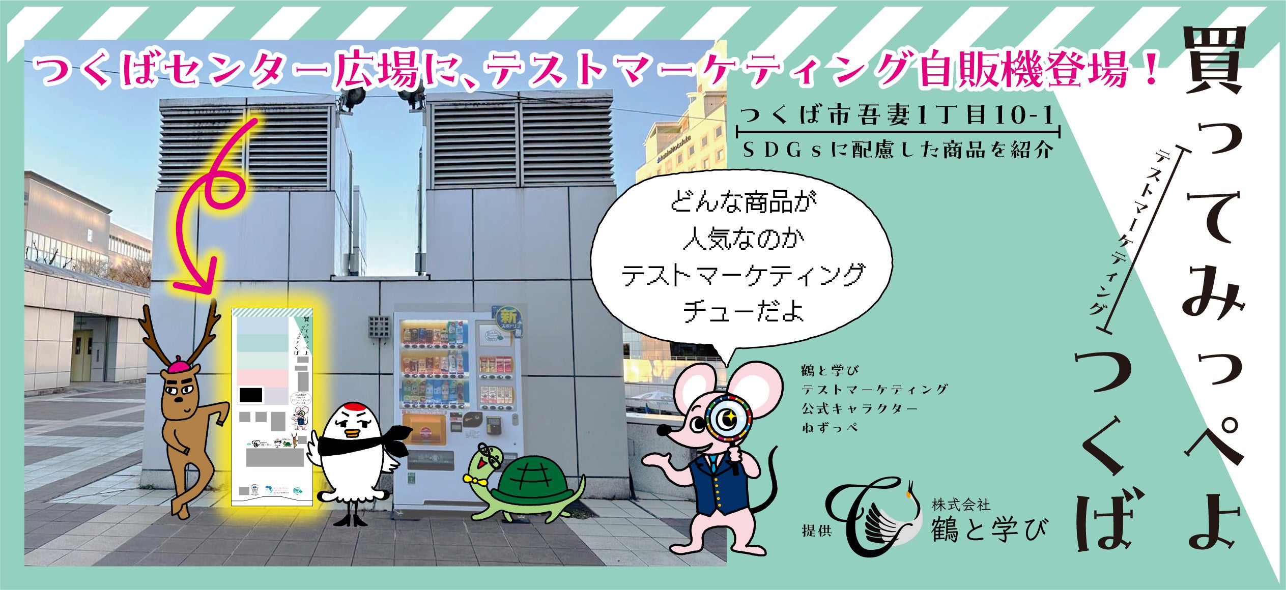 テストマーケティング自販機を設置できる場所は、つくば市が管轄されているエリアです。鶴と学びとしては、地元への恩返しを込めた本プロジェクト。そこで、つくば市が力を入れている『つくばSDGsパートナーズ』に貢献できるよう、SDGsに配慮した新商品を出品することに決めました。地球環境や平等な社会に配慮した商品づくりをされている中小企業の方と一緒に、盛り上げ地域活性化を目指していきたいと考えています。