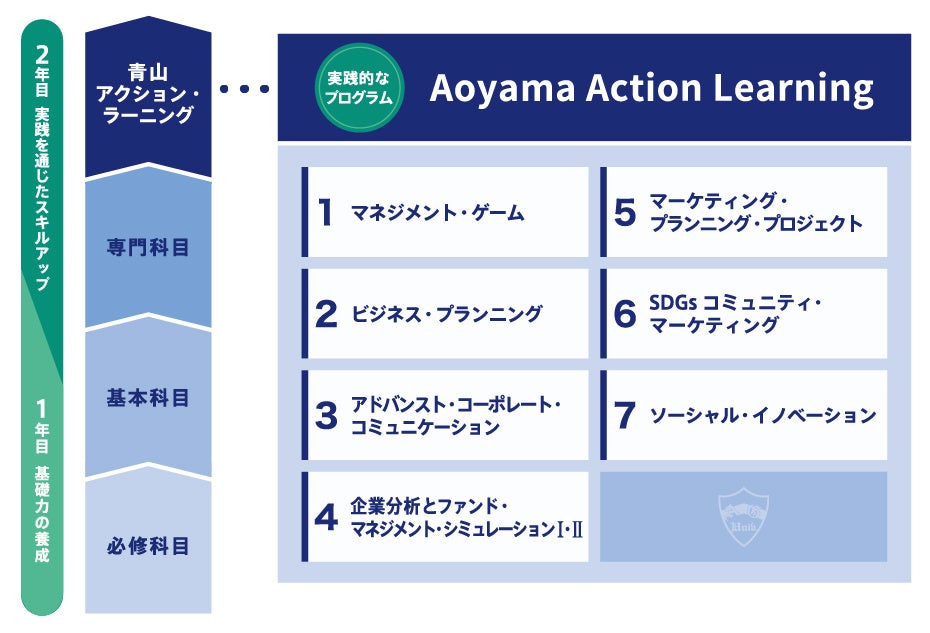 ⽇本の多くのビジネススクールでは修了するために修⼠論⽂が求められますが、ABSはグローバルスタンダードに合わせて修⼠論⽂をなくし、その代わりに海外ビジネススクールや産業界との連携によって開発した科⽬『⻘⼭アクション・ラーニング』を設置しています。これは2年間の学習の総仕上げとして、学びと知識を定着させて実務に活かすことを⽬的とした実践的な科⽬です。