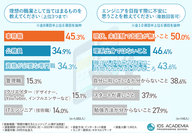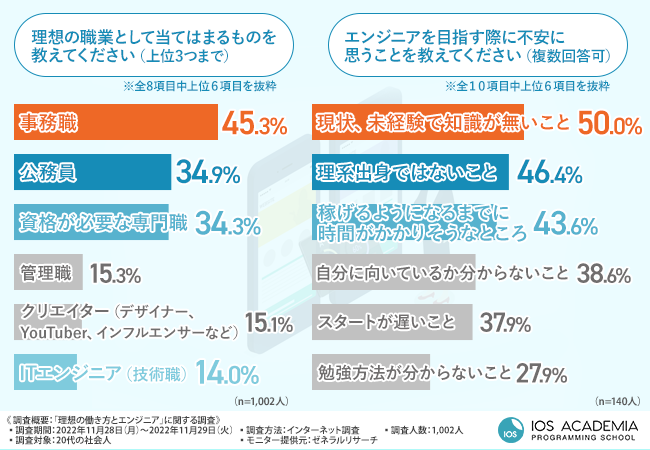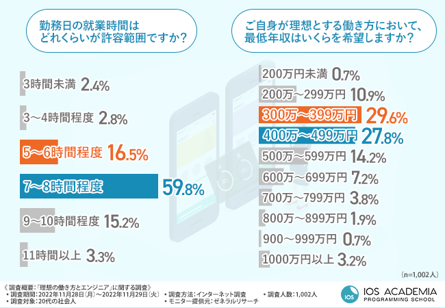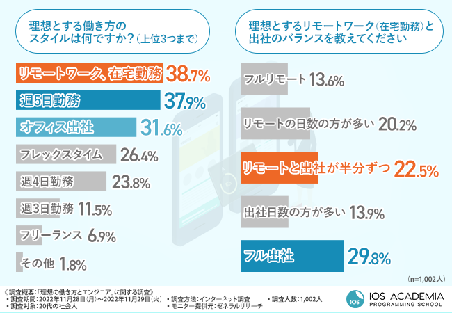 そこで、国内初のiOSエンジニア専門スクール『iOSアカデミア』(https://ios-academia.com/)を運営するinit株式会社は、20代の社会人を対象に、「理想の働き方とエンジニア」に関する調査を実施しました。