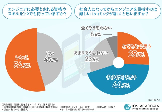 そこで、国内初のiOSエンジニア専門スクール『iOSアカデミア』(https://ios-academia.com/)を運営するinit株式会社は、20代の社会人を対象に、「理想の働き方とエンジニア」に関する調査を実施しました。
