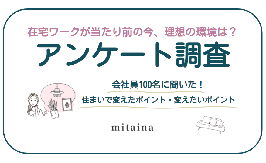 そこで株式会社I-House(本社:東京都港区)が運営する、住まいのメディア『mitaina』では、コロナ禍で在宅ワークがスタートした会社員100名にアンケート調査を実施。住まいに関して変えたポイント・今後変えたいポイントについて詳しく聞きました。